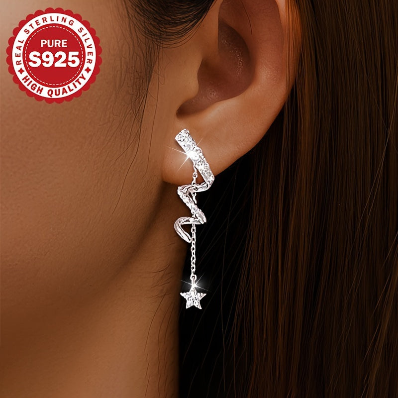 S925 Spiral Star Chain Earrings & Blingbling Earrings