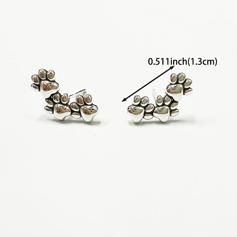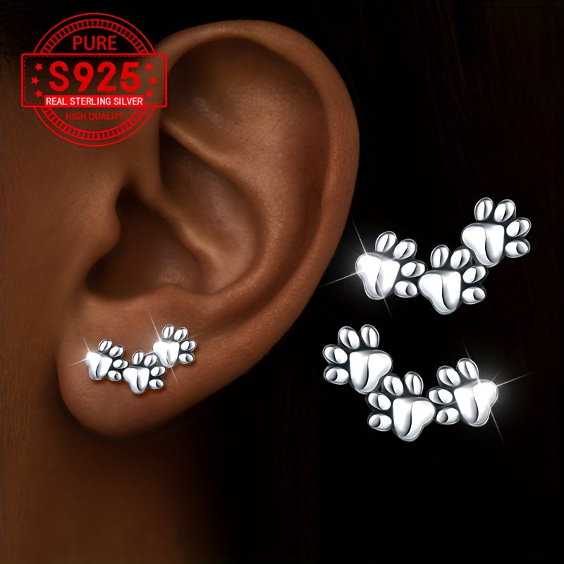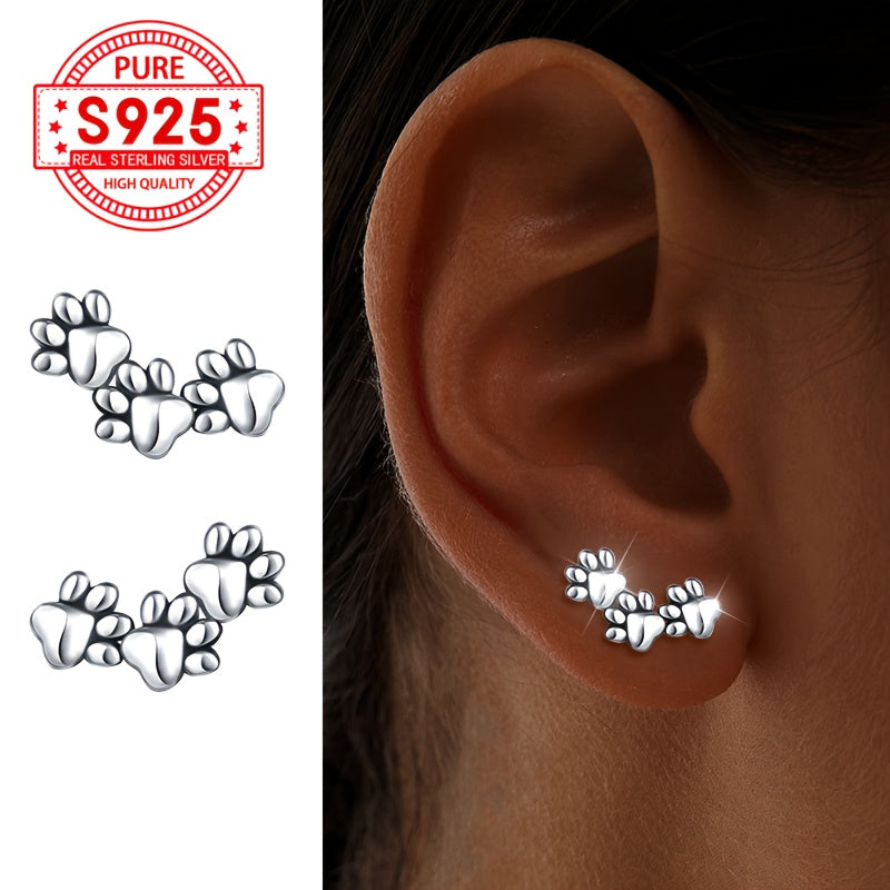S925 Sterling Silver Animal Paw Stud Earrings Hypoallergenic Jewelry for Women