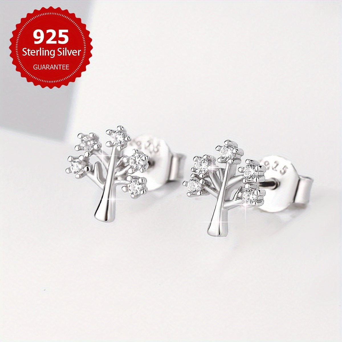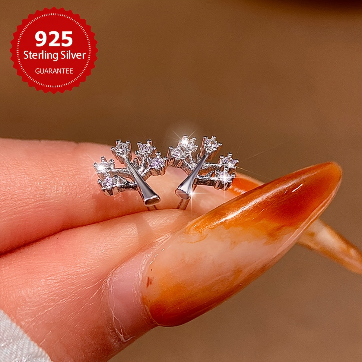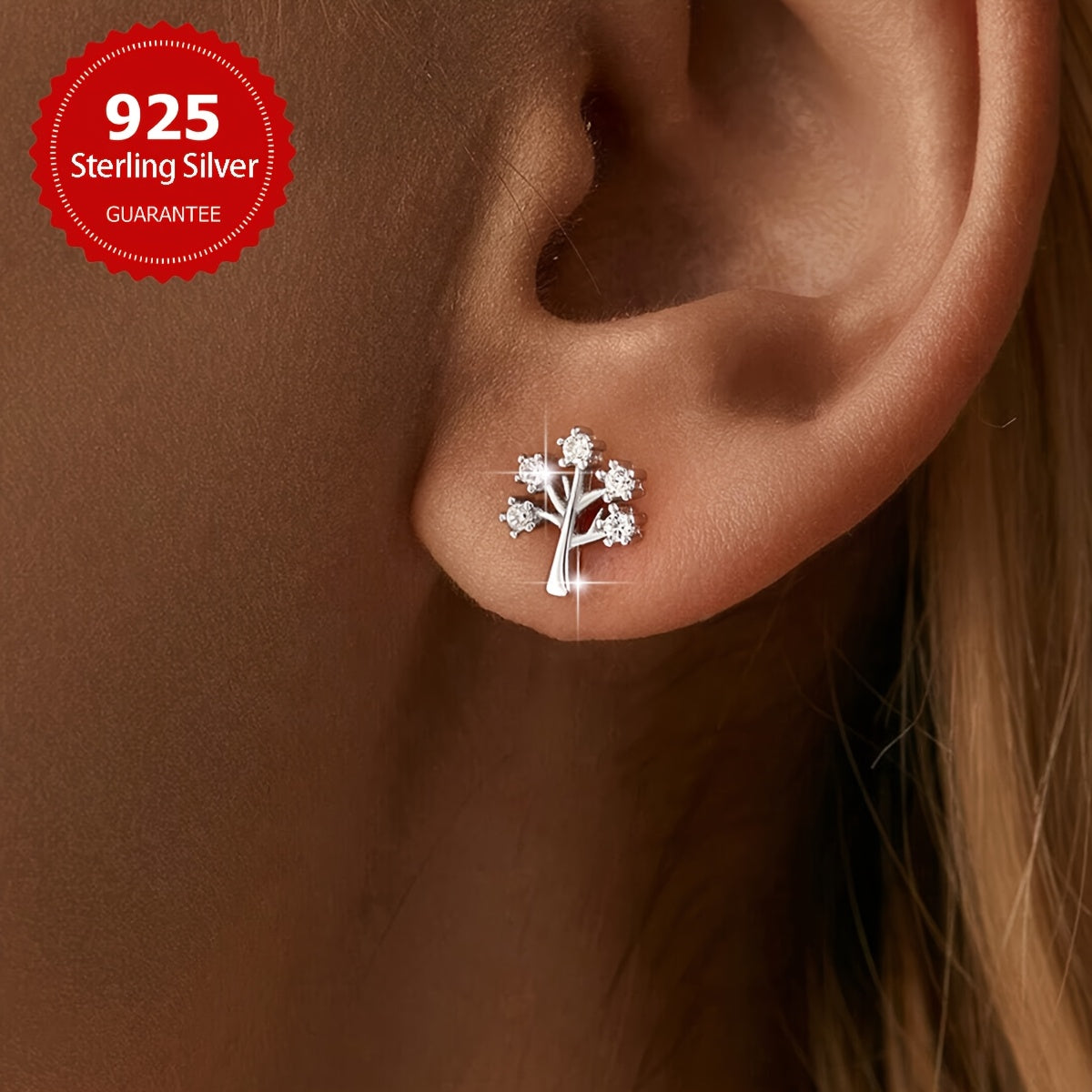 Add a touch of elegance with these exquisite S925 sterling silver earrings featuring a five star sapling design. The perfect gift for any occasion.