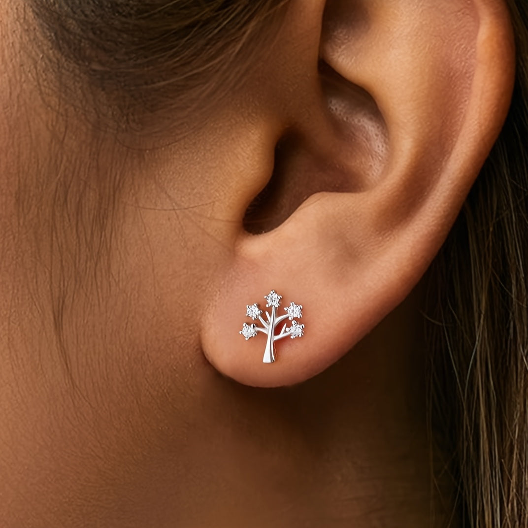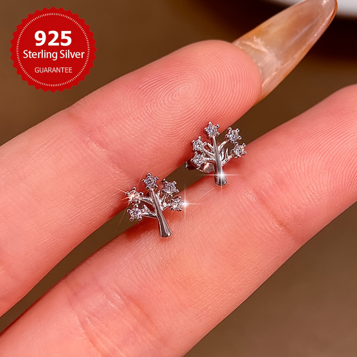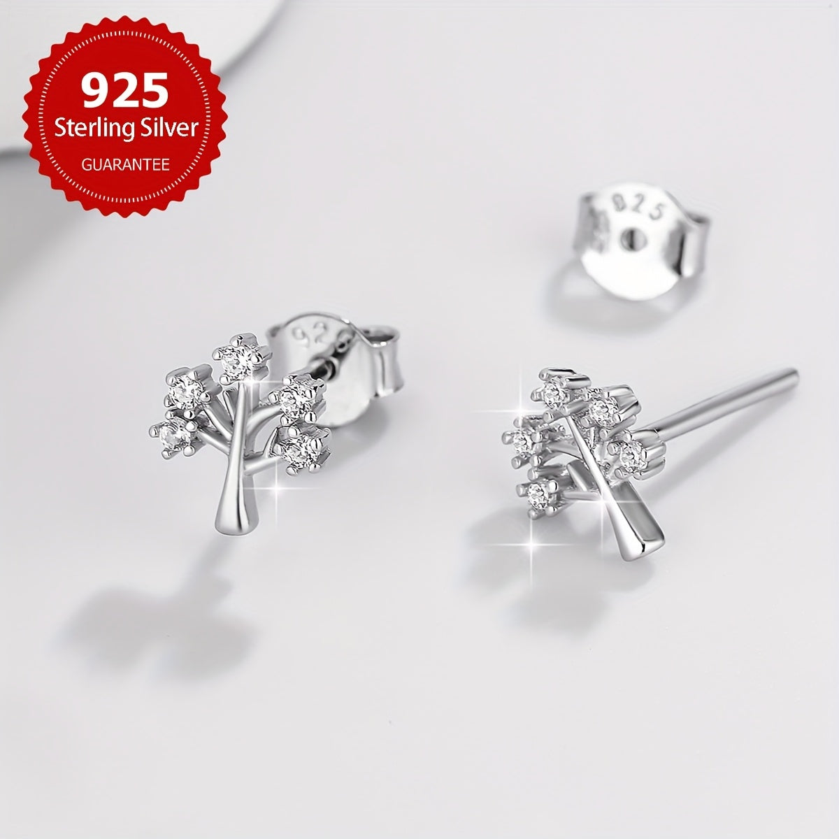 Add a touch of elegance with these exquisite S925 sterling silver earrings featuring a five star sapling design. The perfect gift for any occasion.