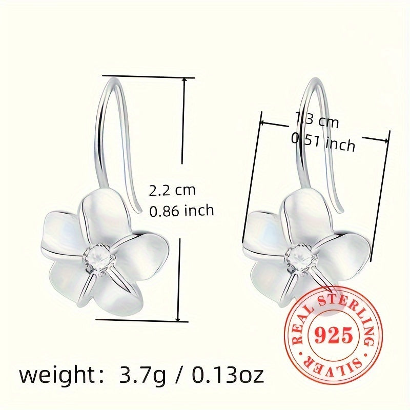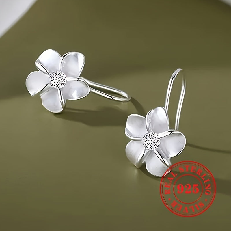 S925 Sterling Silver Flower Dangle Earrings with Zirconia, Daily Party Jewelry