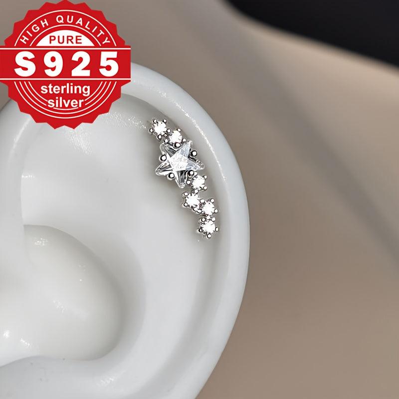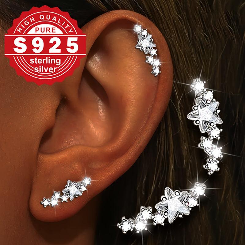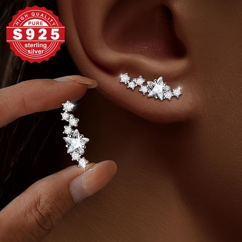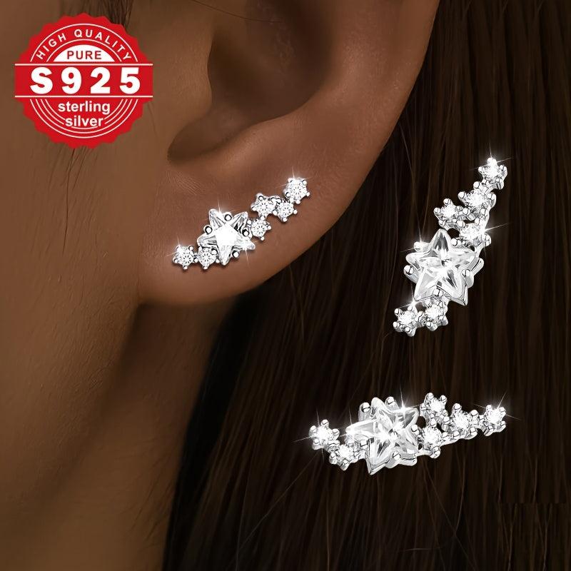 S925 Sterling Silver Star Stud Earrings with Cubic Zirconia - Hypoallergenic