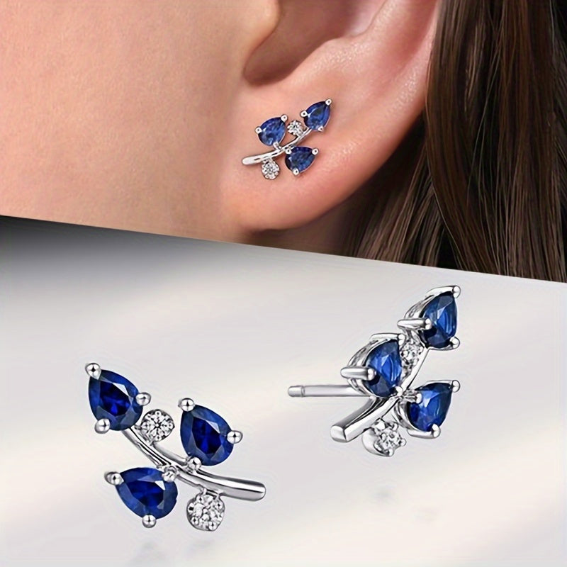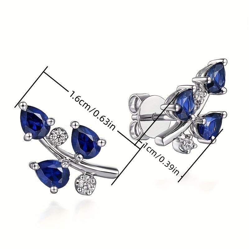 Sapphire Stud Earrings for Women Copper Nickel Plated Ear Studs Wedding Gift