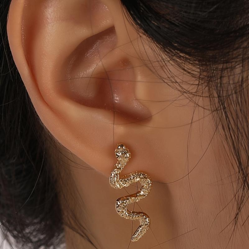 Snake Shaped Stud Earrings Hip Hop Style Serpent Ear Jewelry