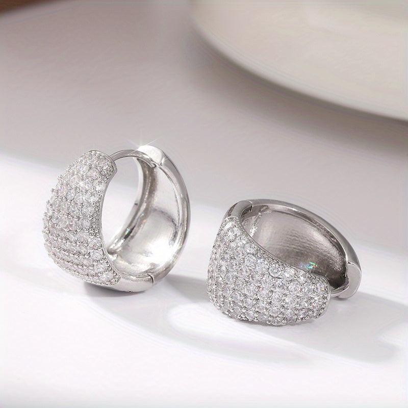 These minimalist hoop earrings feature synthetic zirconia stones set in golden plated copper, perfect for weddings, Christmas, and daily wear.