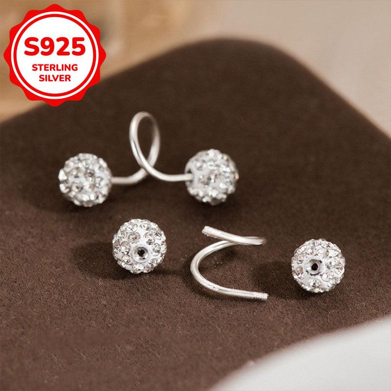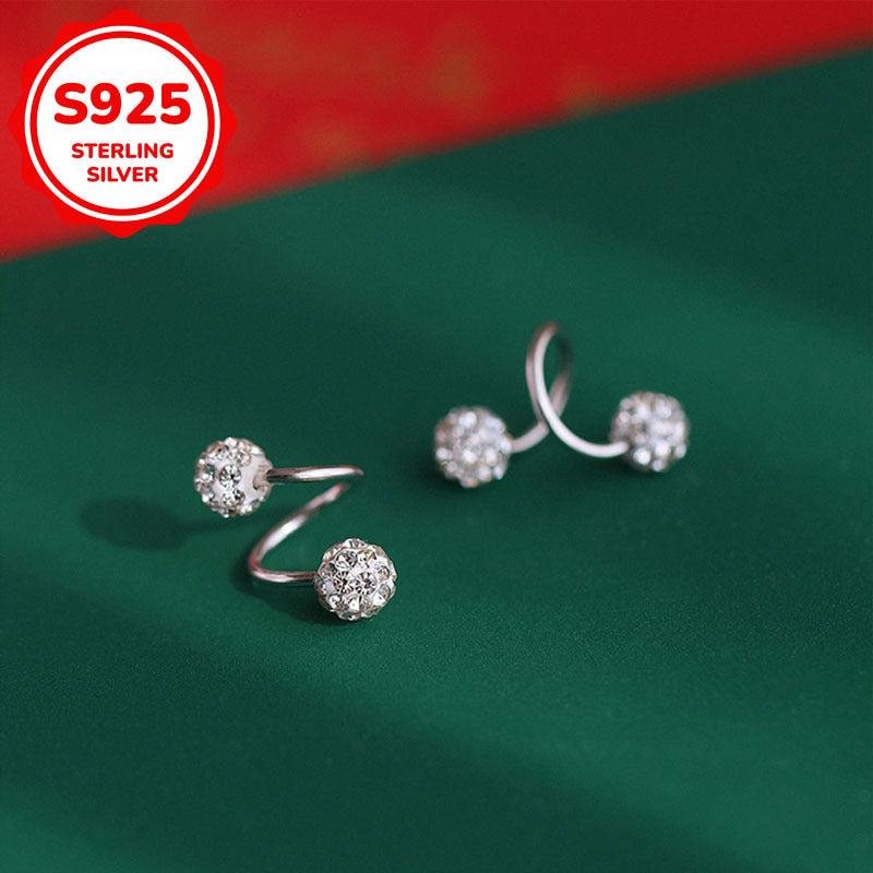 These stunning earrings feature synthetic zirconia inlaid Shambhala stud ball spiral design. Made from glittering 1.6g S925 silver, they are suitable for daily wear.