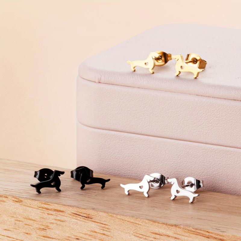 These hypoallergenic daily wear dog-shaped earrings are perfect for women. The set includes 2 pairs of stainless steel earrings.