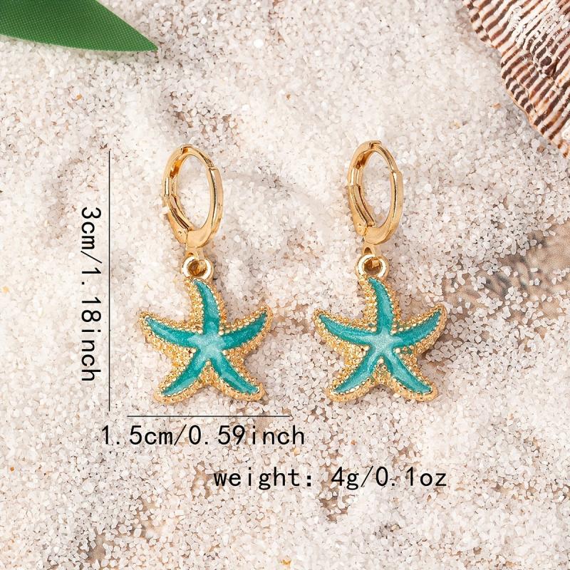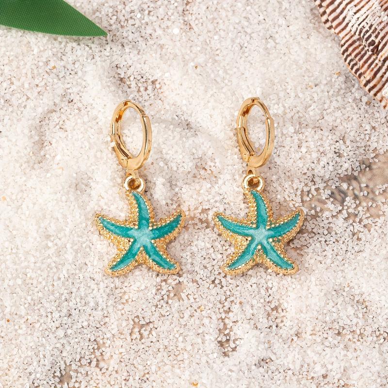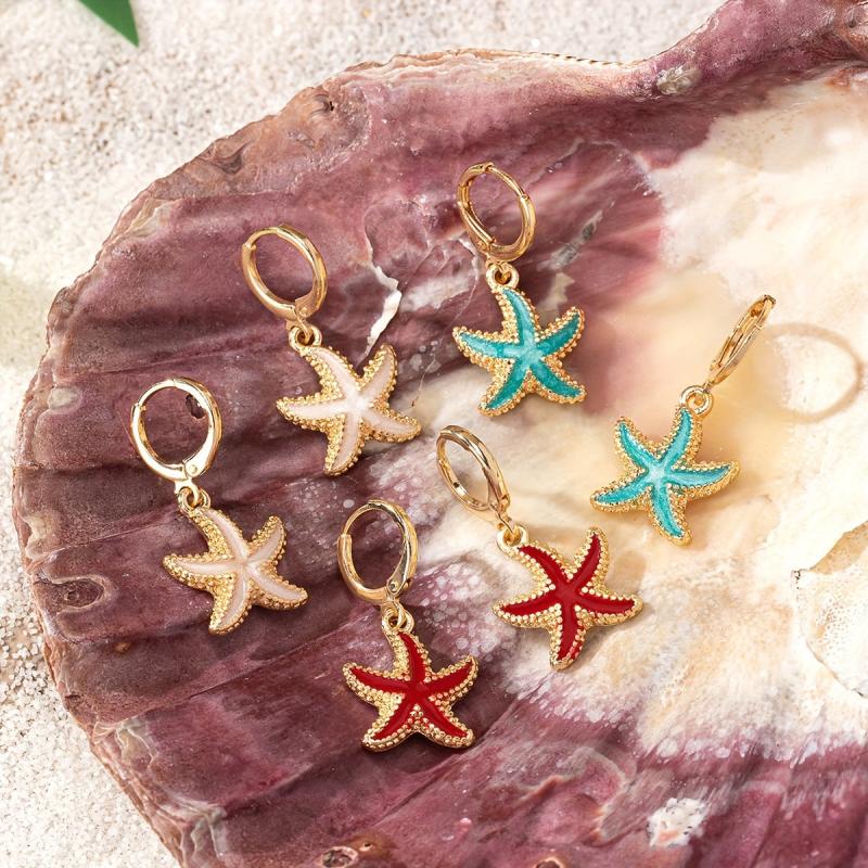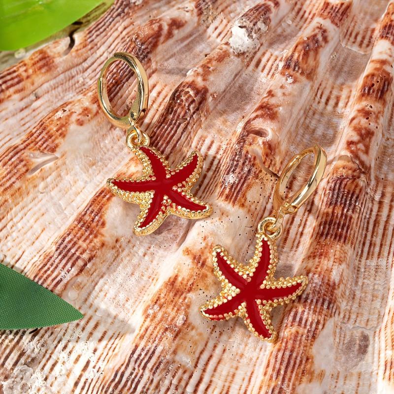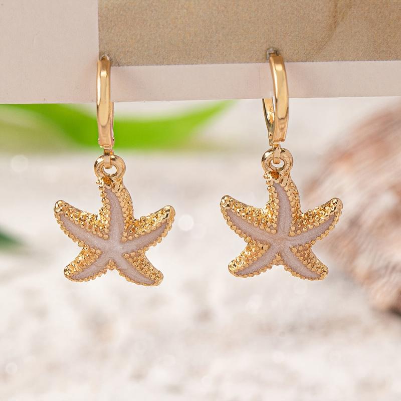 Starfish Drop Earrings Enamel Finish Golden Tone Summer Jewelry for Women