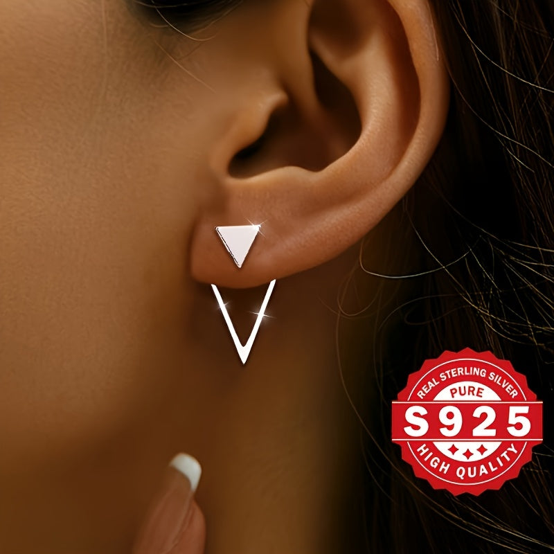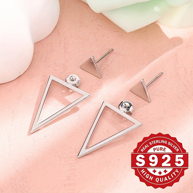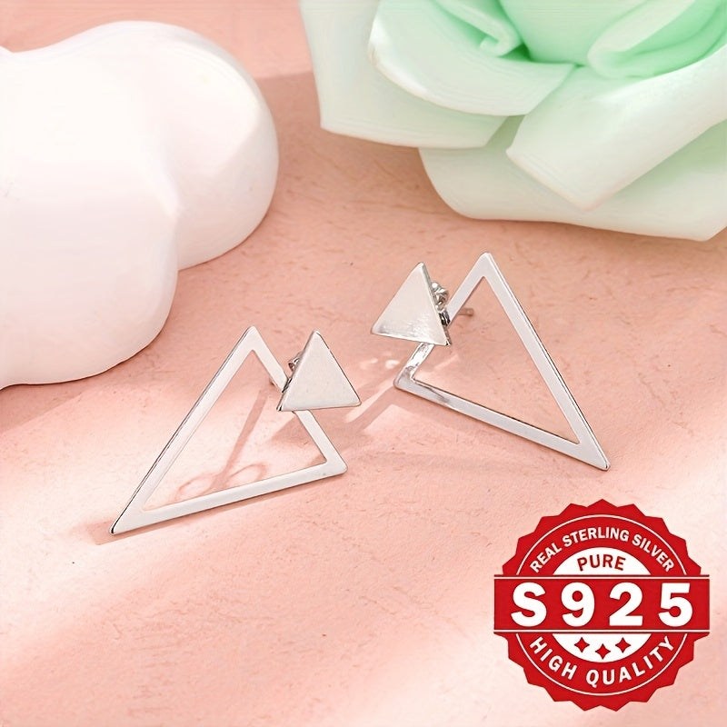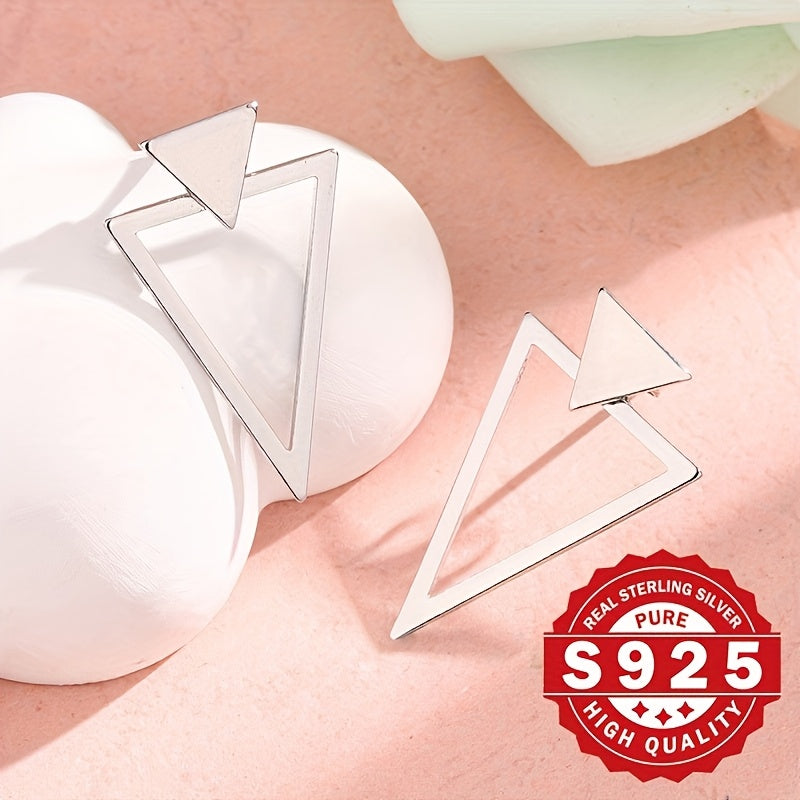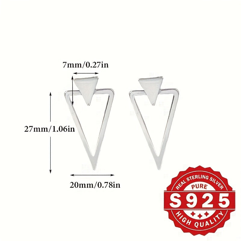 Add a touch of modern elegance with these S925 sterling silver stud earrings. The triangular shape is complemented by a minimalist geometric pattern, adding sophistication to any outfit.