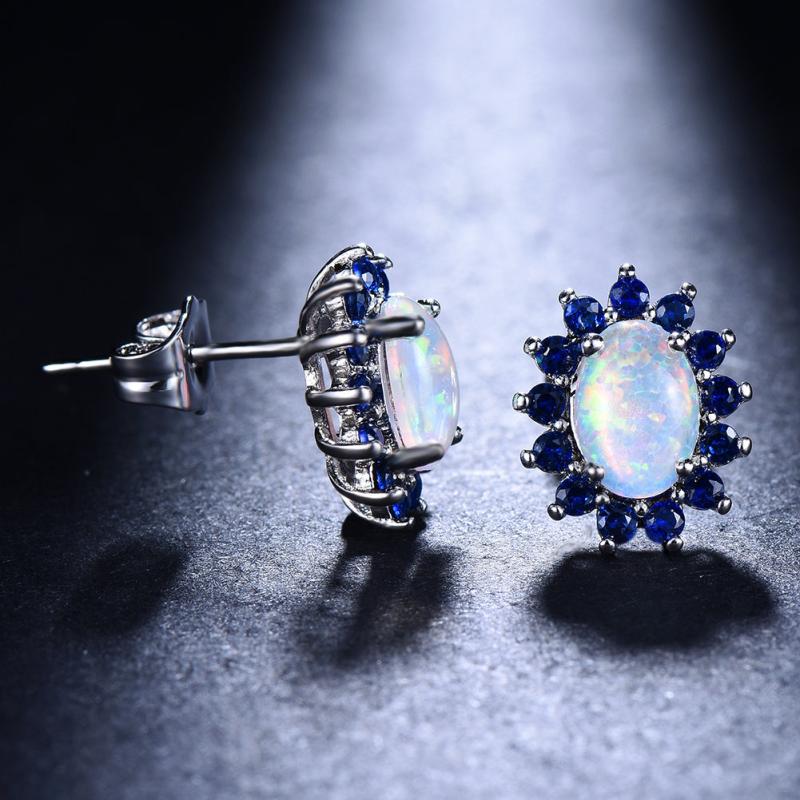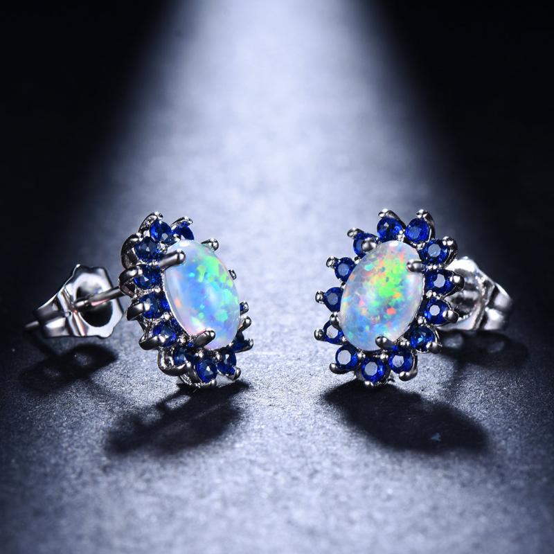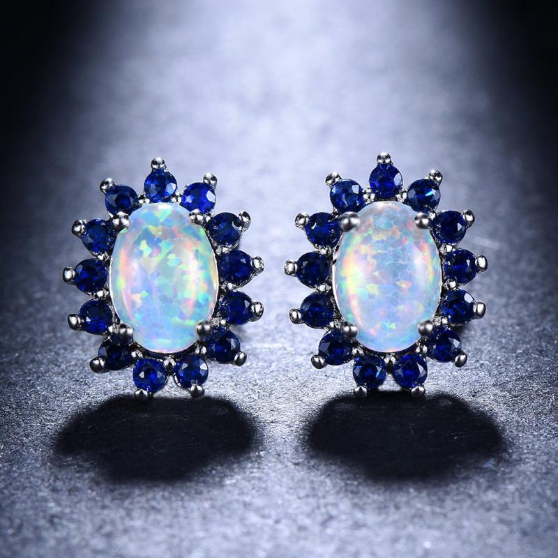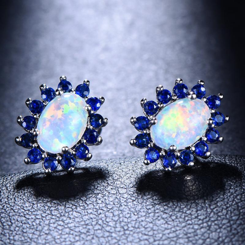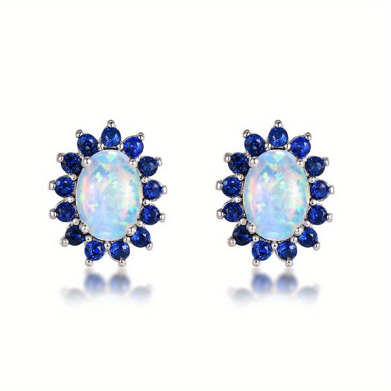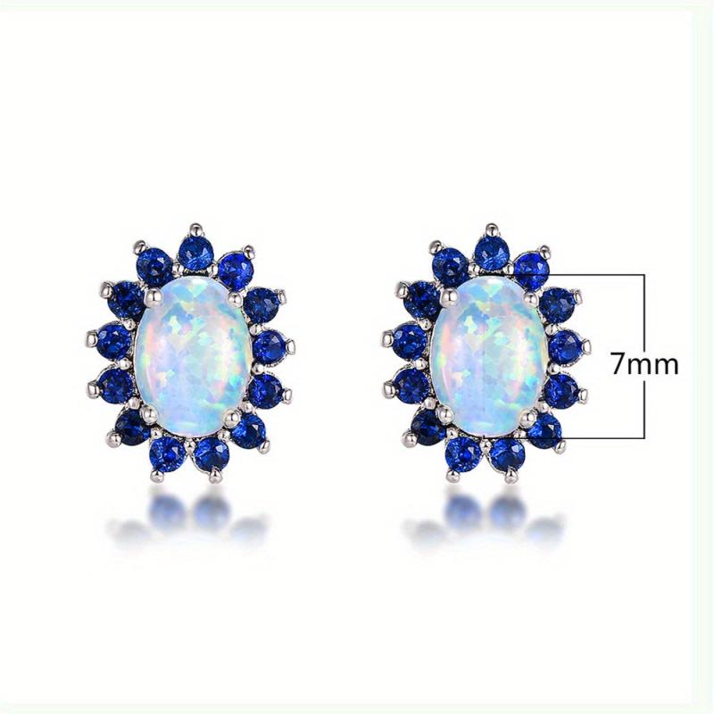 These sunflower stud earrings feature classic oval opal and zirconia accents that sparkle. Ideal for weddings, parties, and daily wear.