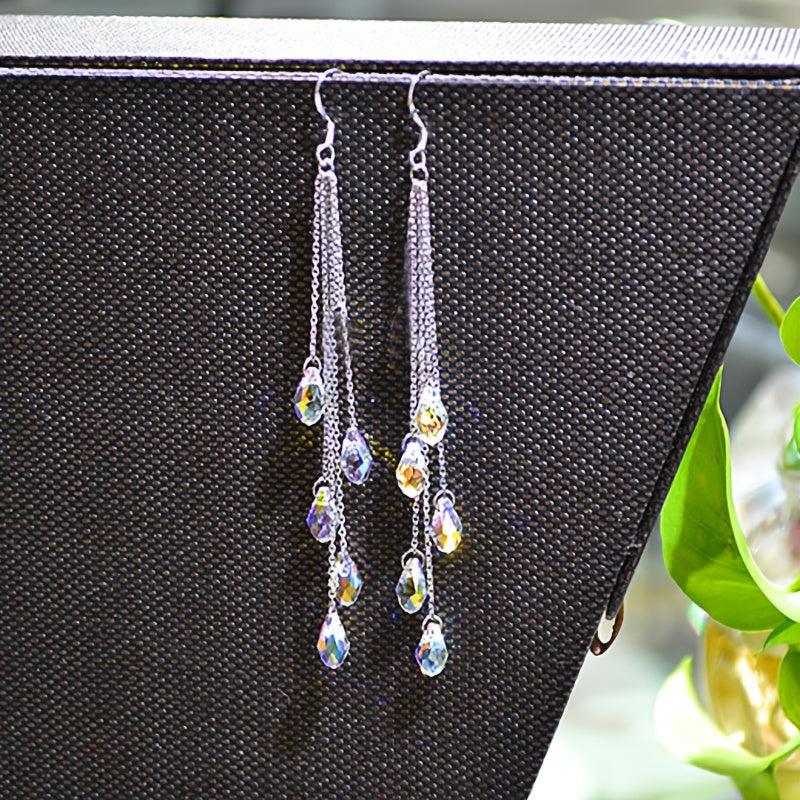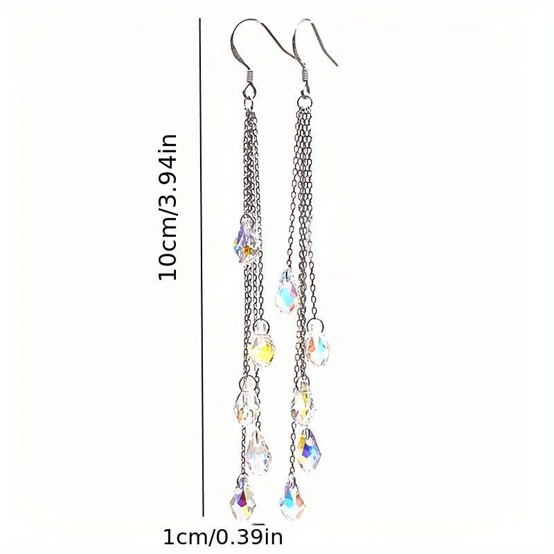 These elegant tassel drop earrings feature artificial crystal embellishments and are made of K plated alloy. The long tassels add a touch of sophistication to any outfit.