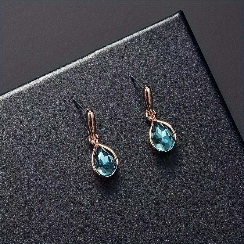 These teardrop earrings feature synthetic cubic zirconia in a golden tone alloy. Perfect for casual attire and gift giving throughout the year.