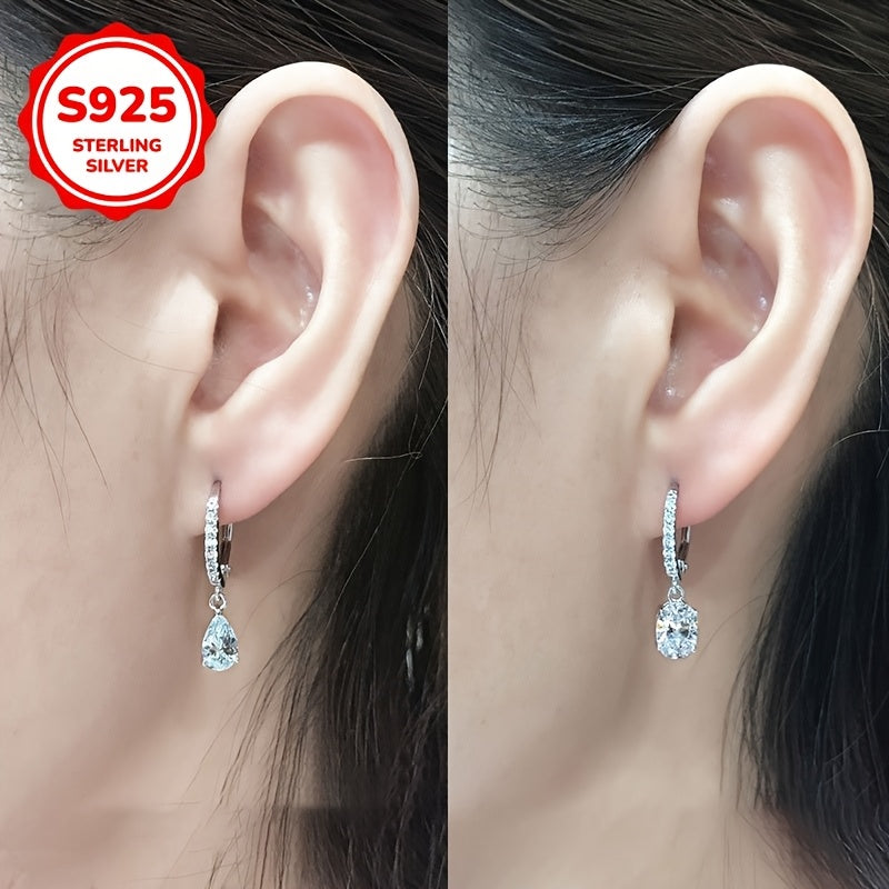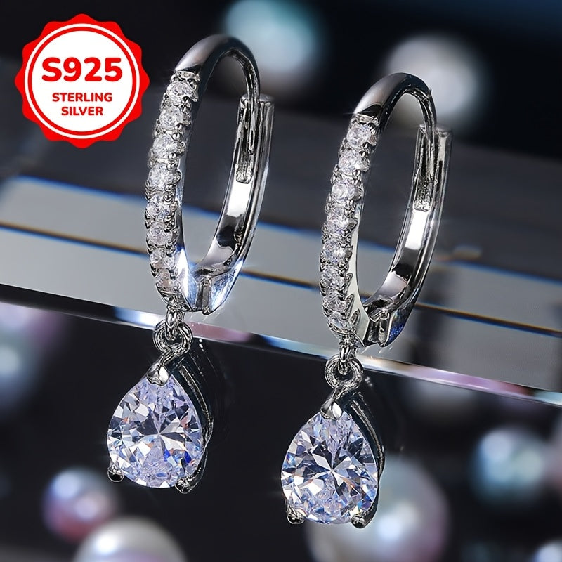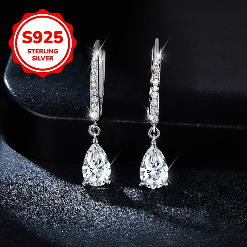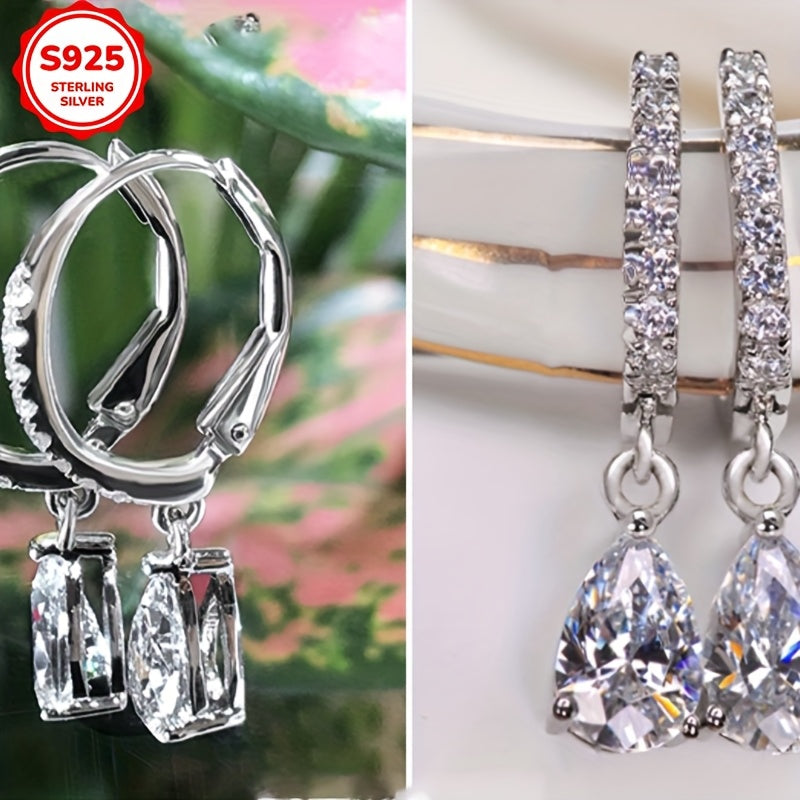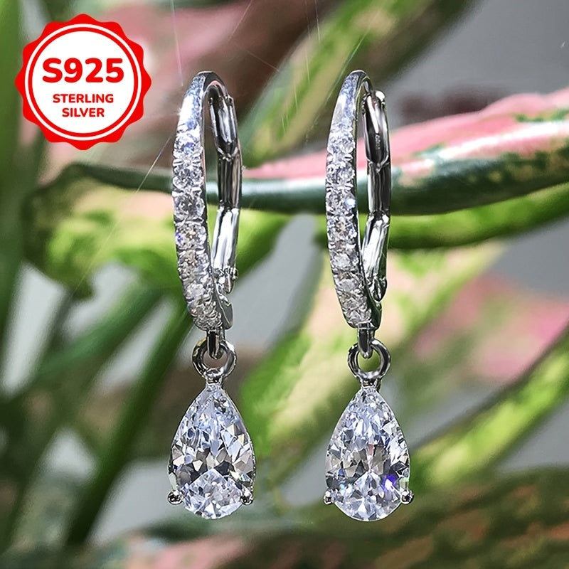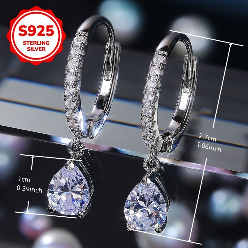 Add sparkle to your look with these elegant teardrop dangle earrings. Made with high-quality S925 sterling silver and sparkling synthetic zirconia, they are perfect for weddings, parties, and everyday wear.