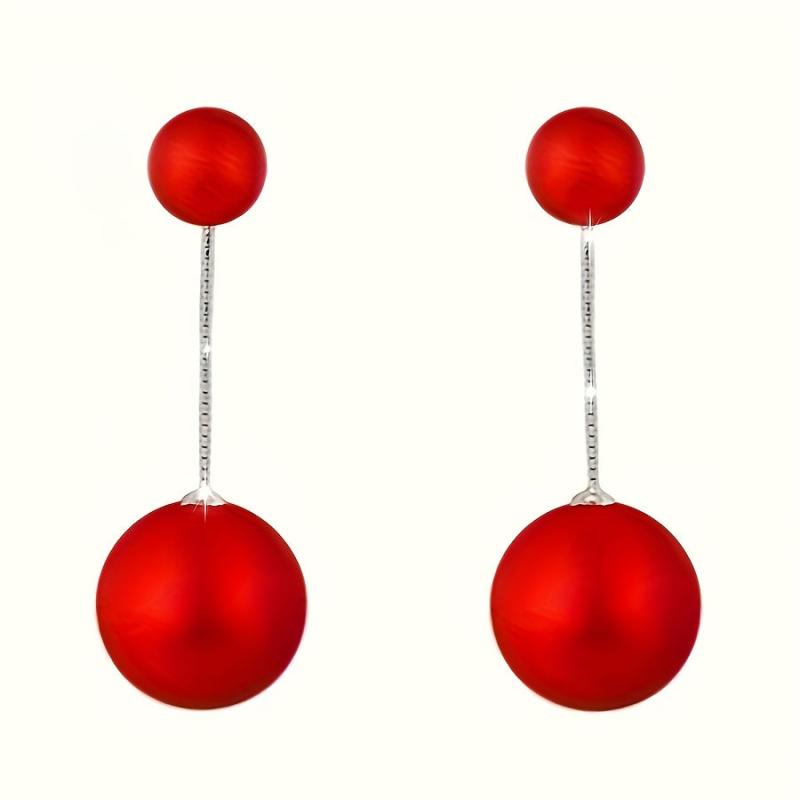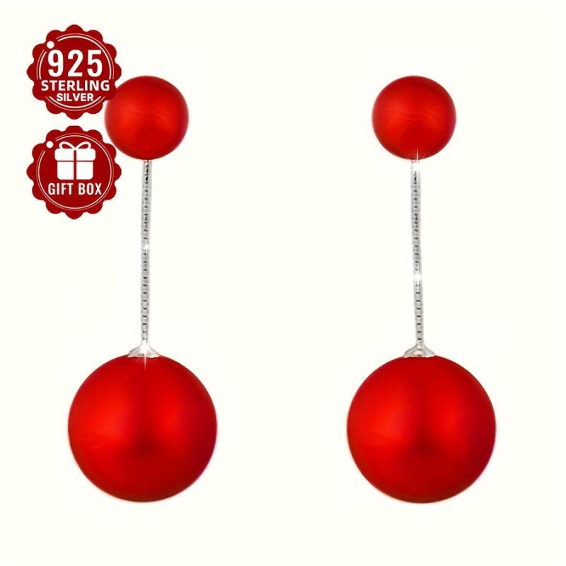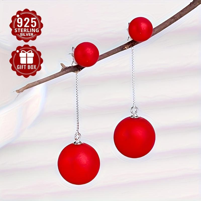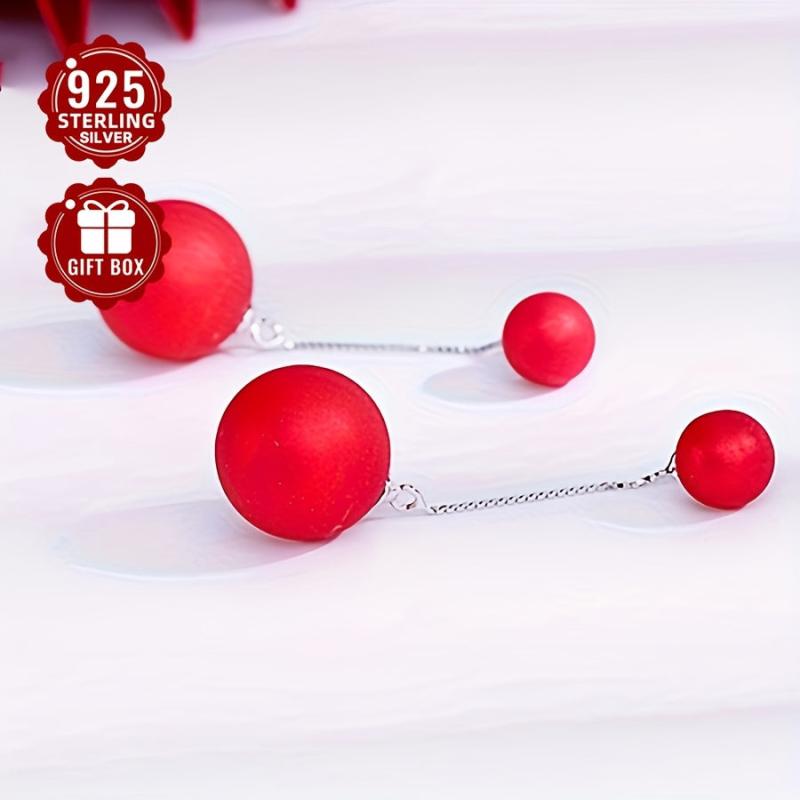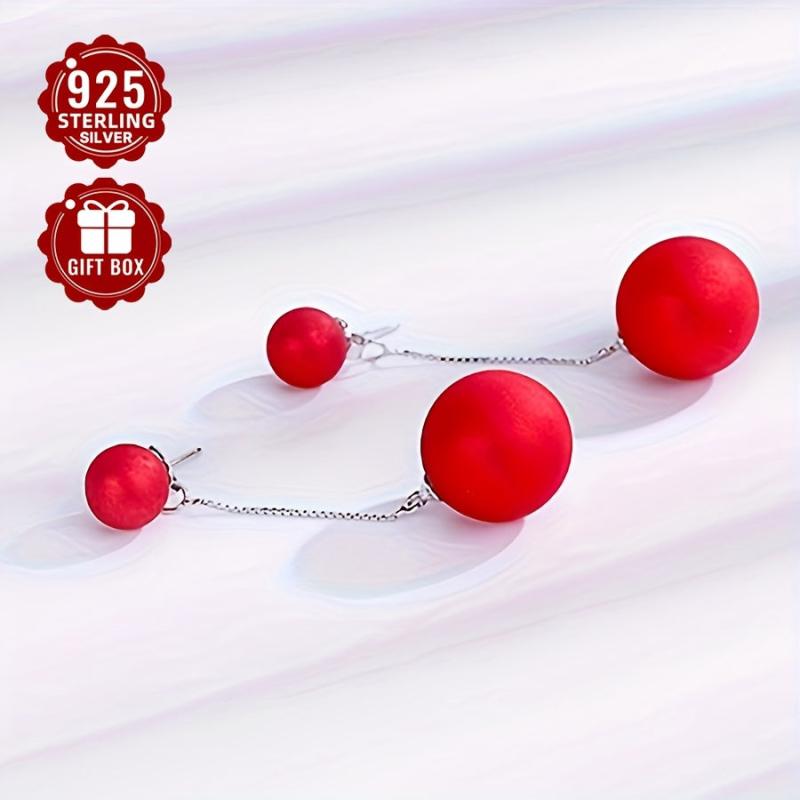 Elegant tribal-inspired 925 sterling silver stud earrings with red beads, perfect for parties and banquets. Features hypoallergenic ear needle for sensitive skin.