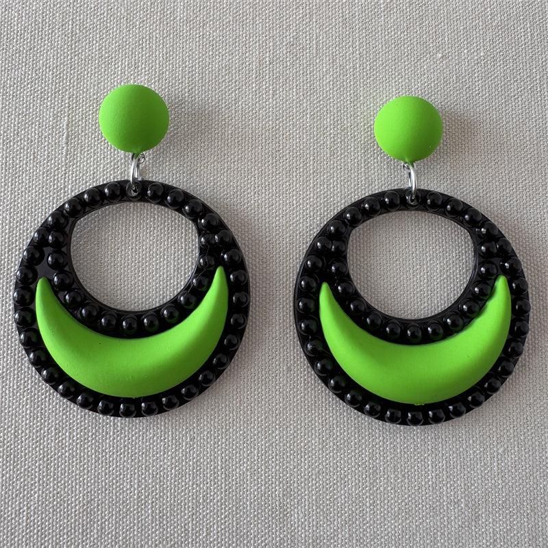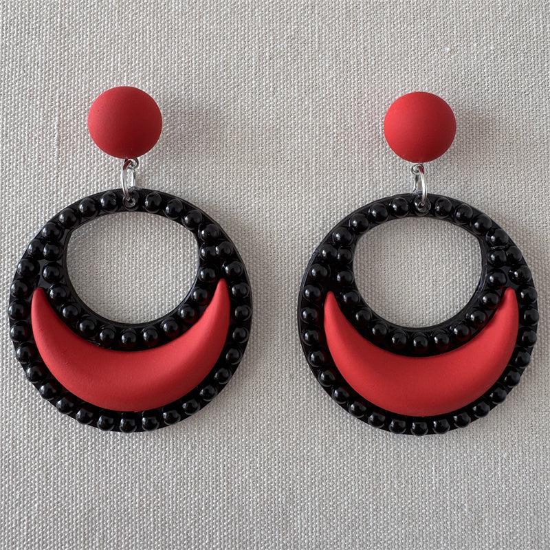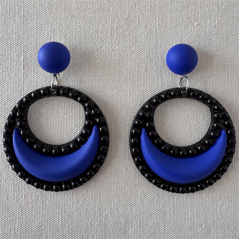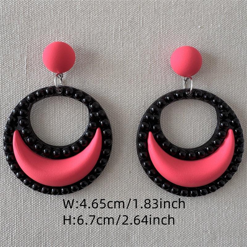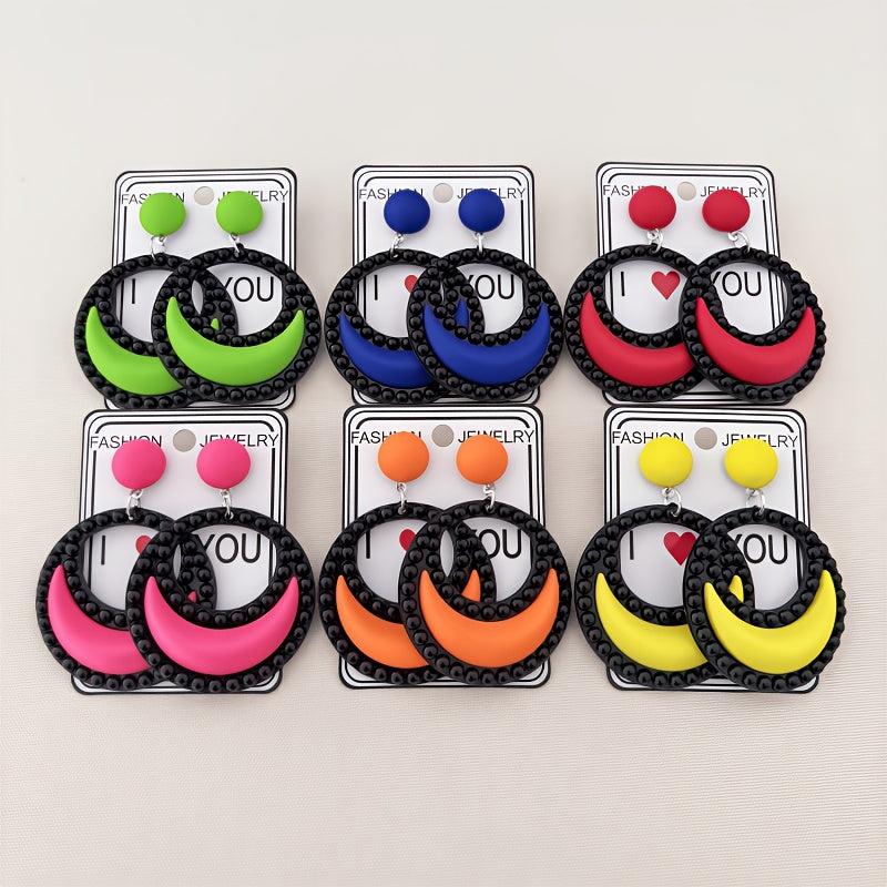 These stylish crescent circle dangle earrings are perfect for daily wear. Made of royal plastic with iron ear needle.