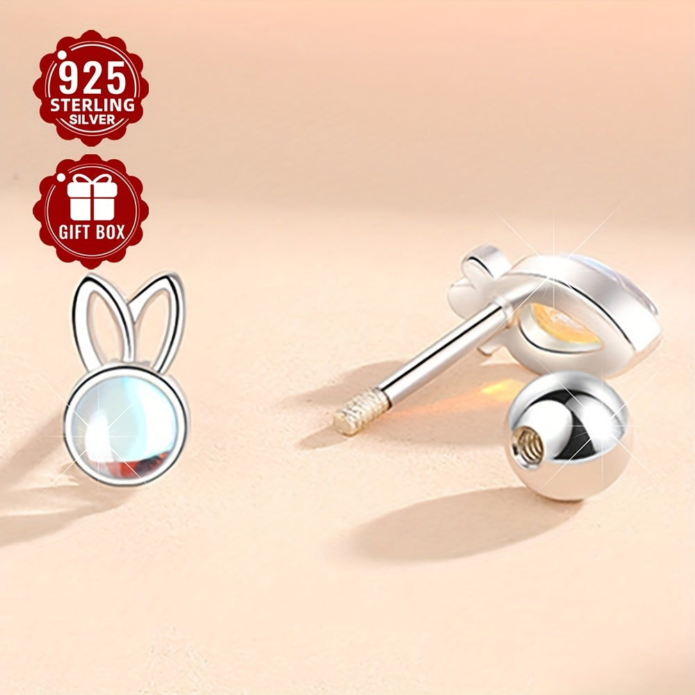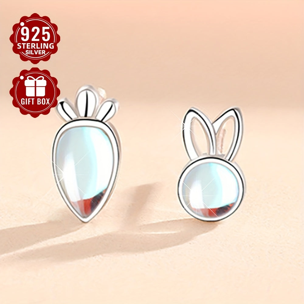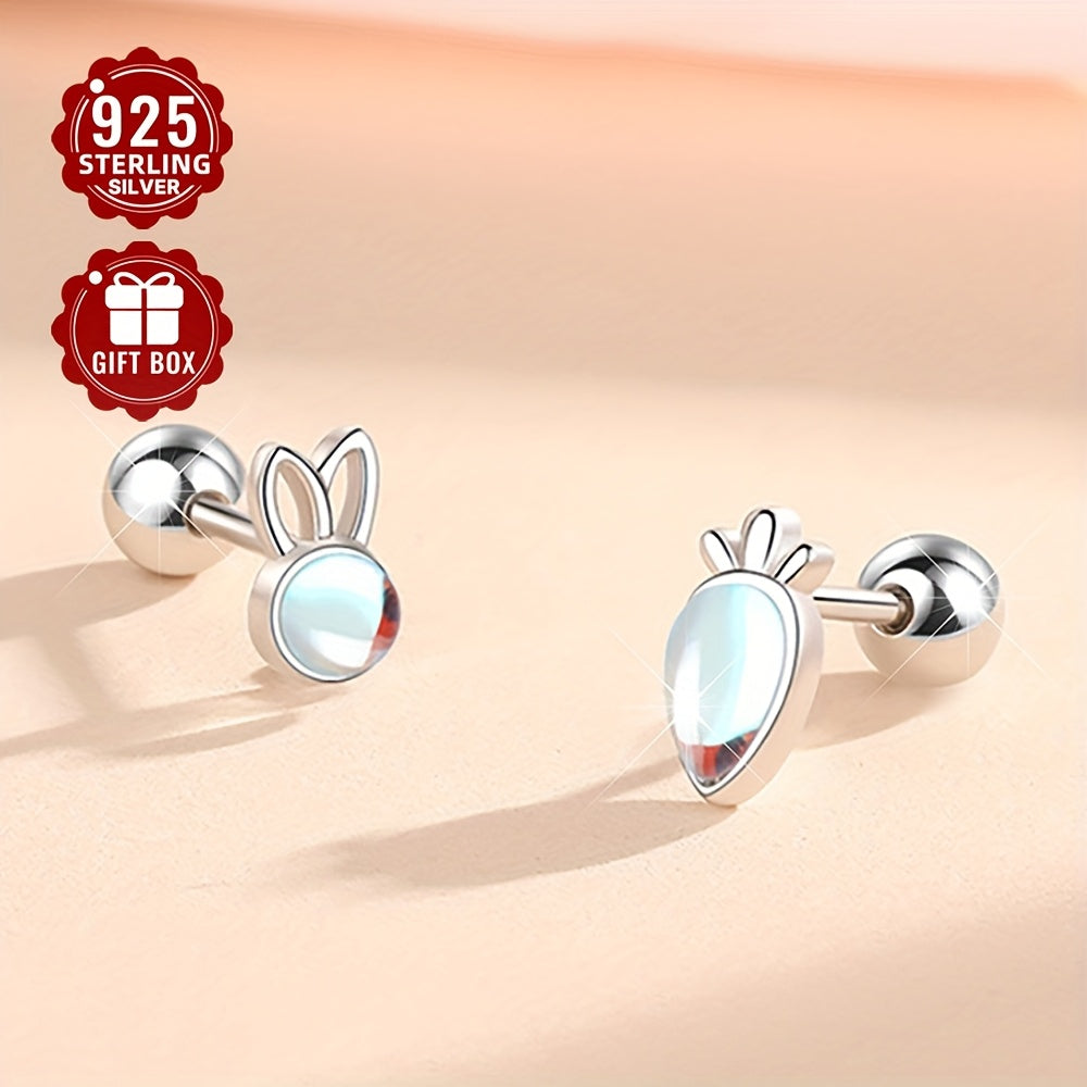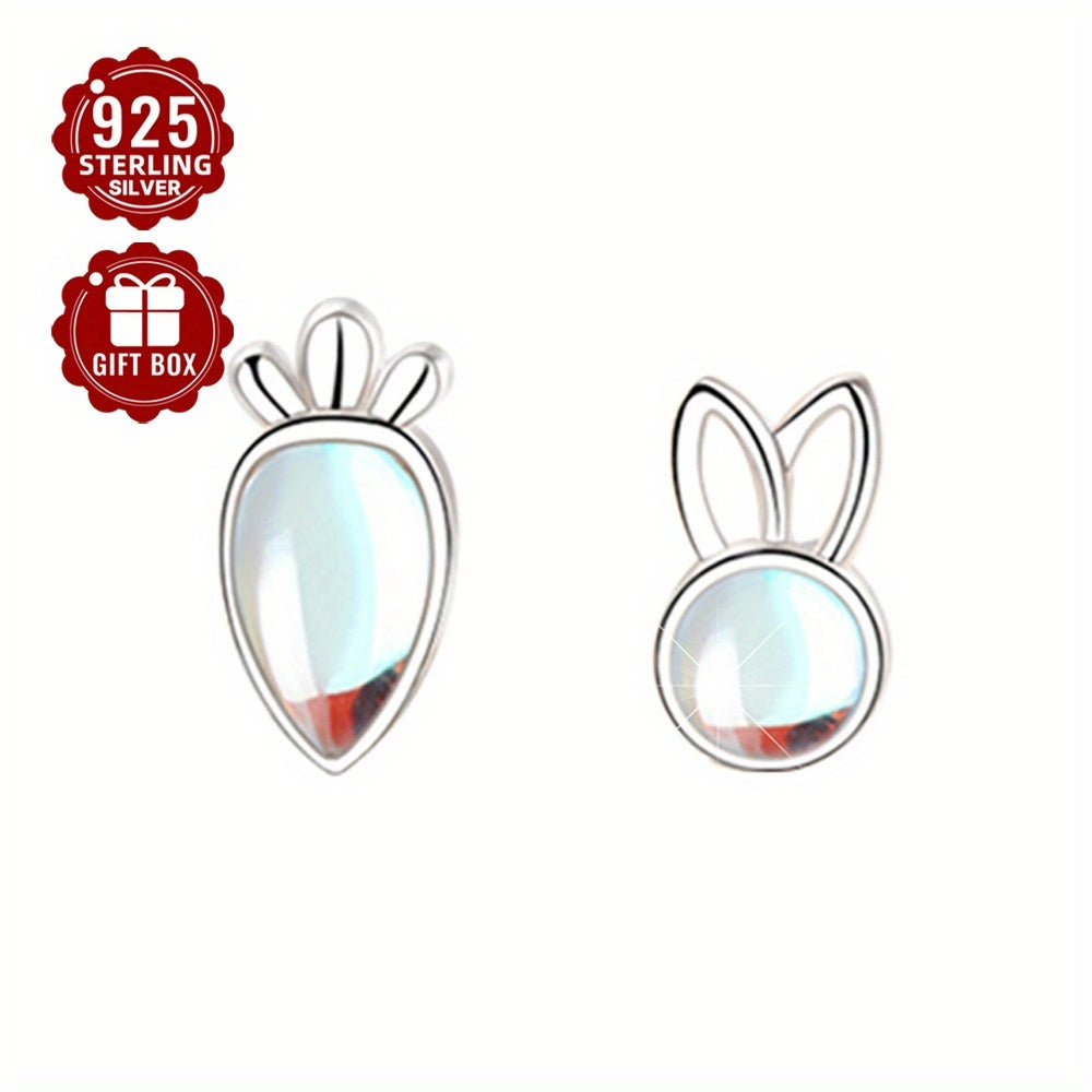 These vintage cartoon rabbit stud earrings are made of 925 sterling silver with natural stones. The set includes 2 asymmetrical earrings with screw backs. Total weight is 1.2g.