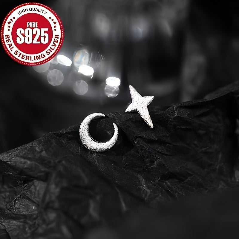 These elegant earrings feature a unique star and moon design, crafted in S925 pure silver. Perfect for daily wear or as a thoughtful gift for a loved one.