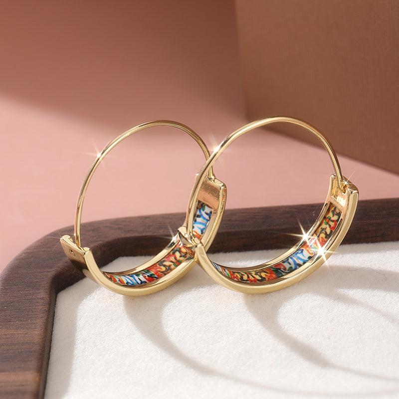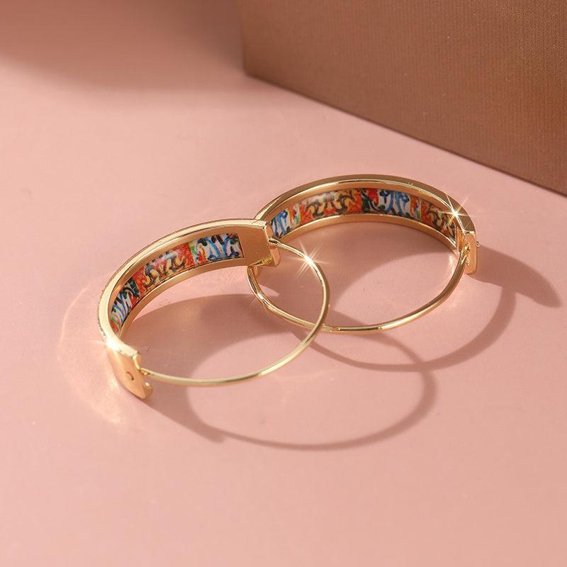 Add a touch of bohemian flair to your outfit with these vintage-inspired earrings. The golden-plated C-shaped design is adorned with colorful enamel for a festive look.