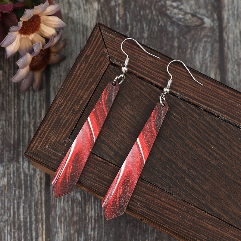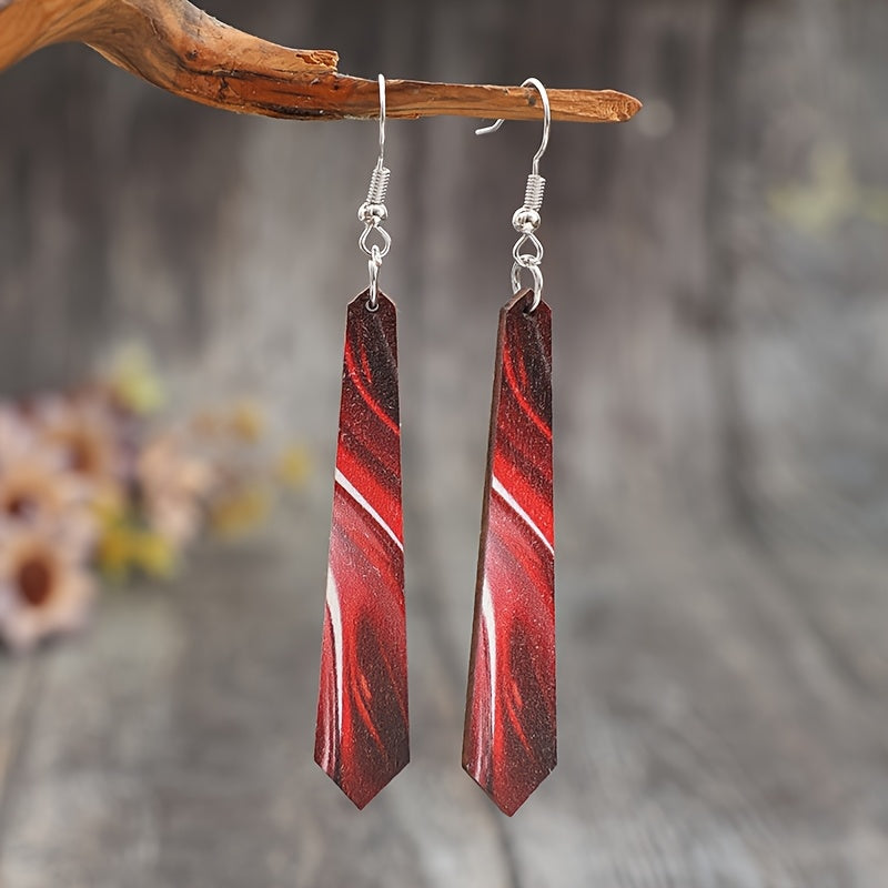 These vintage bohemian style long wooden earrings with iron hooks are perfect for casual attire. The abstract design adds a unique touch to your look.