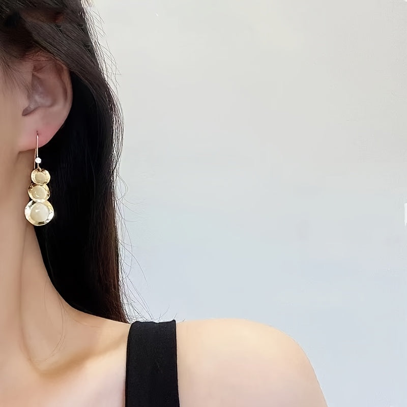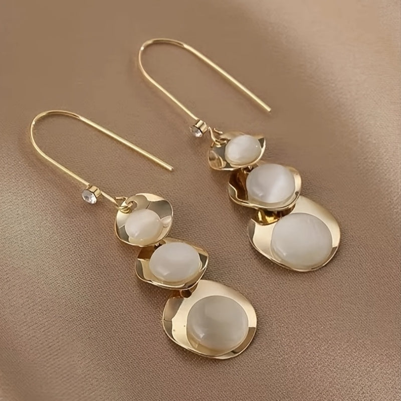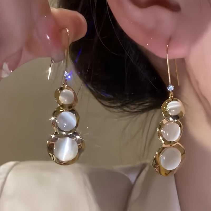 These long drop earrings feature a unique combination of simulated jade and cat's eye stone, making them perfect for parties, dates, and everyday wear.