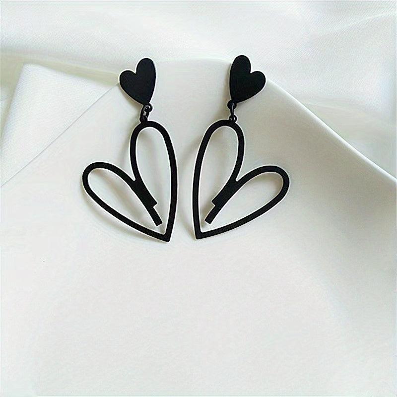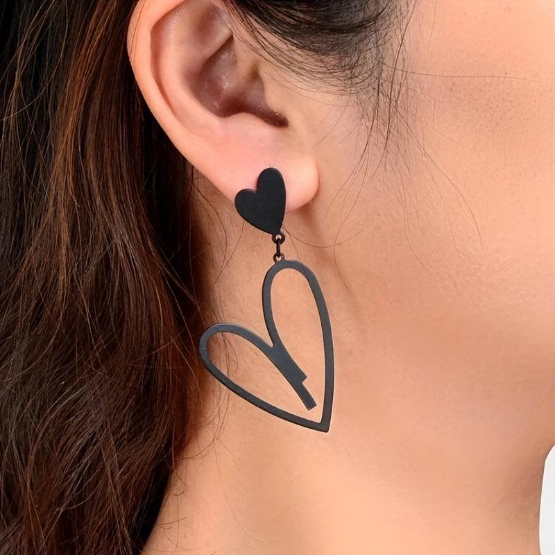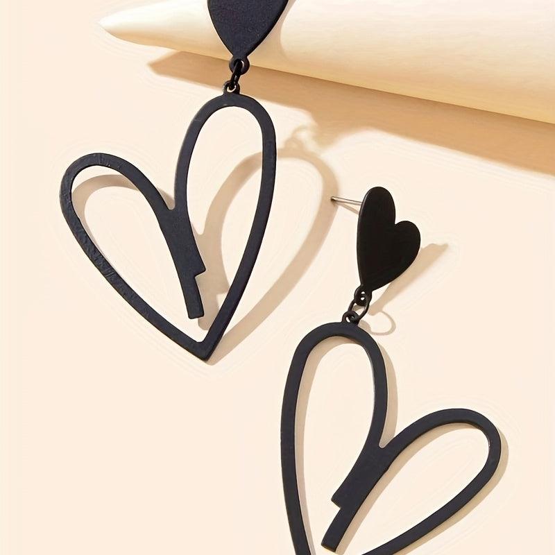 Elegant earrings with a vintage gothic look, featuring a hollow geometric heart design. Made with high-quality alloy and stainless steel ear needles. Suitable for daily wear or vacation outfits, perfect for all seasons.