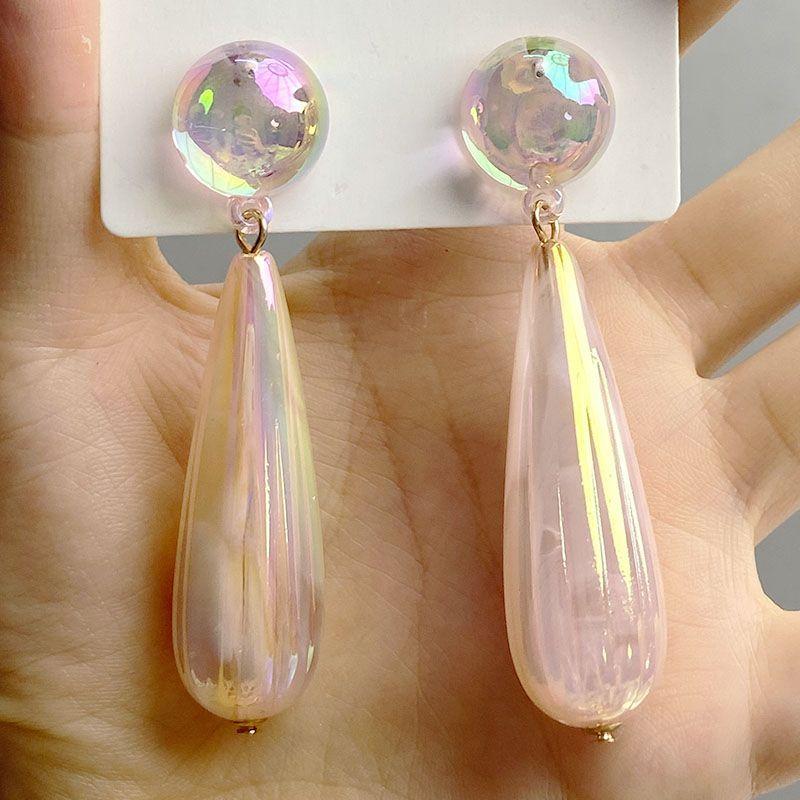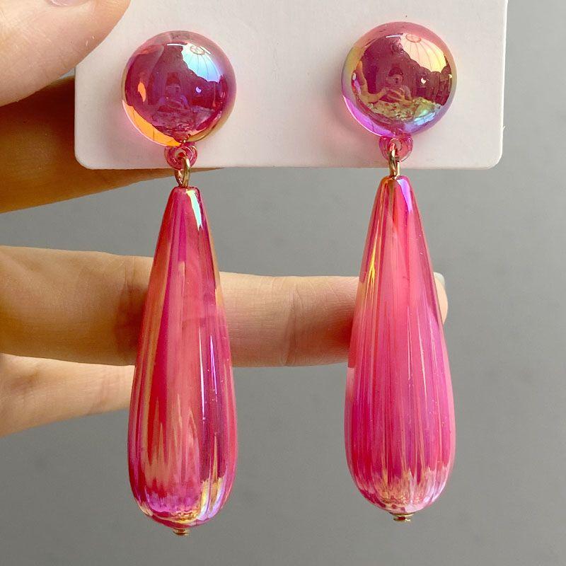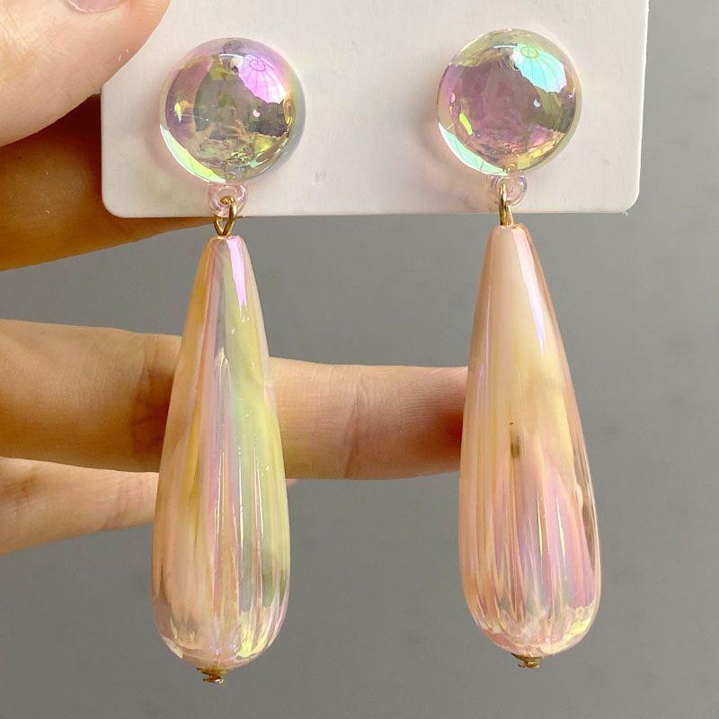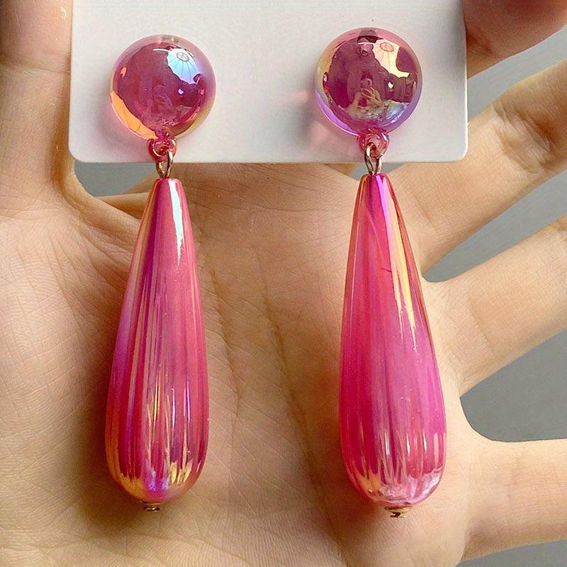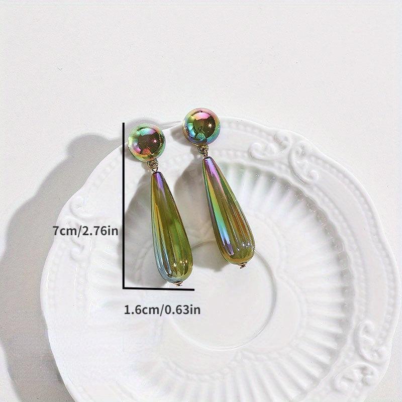 These stylish earrings feature a teardrop design made of resin, with stainless steel ear needles. They provide a fashionable retro look.