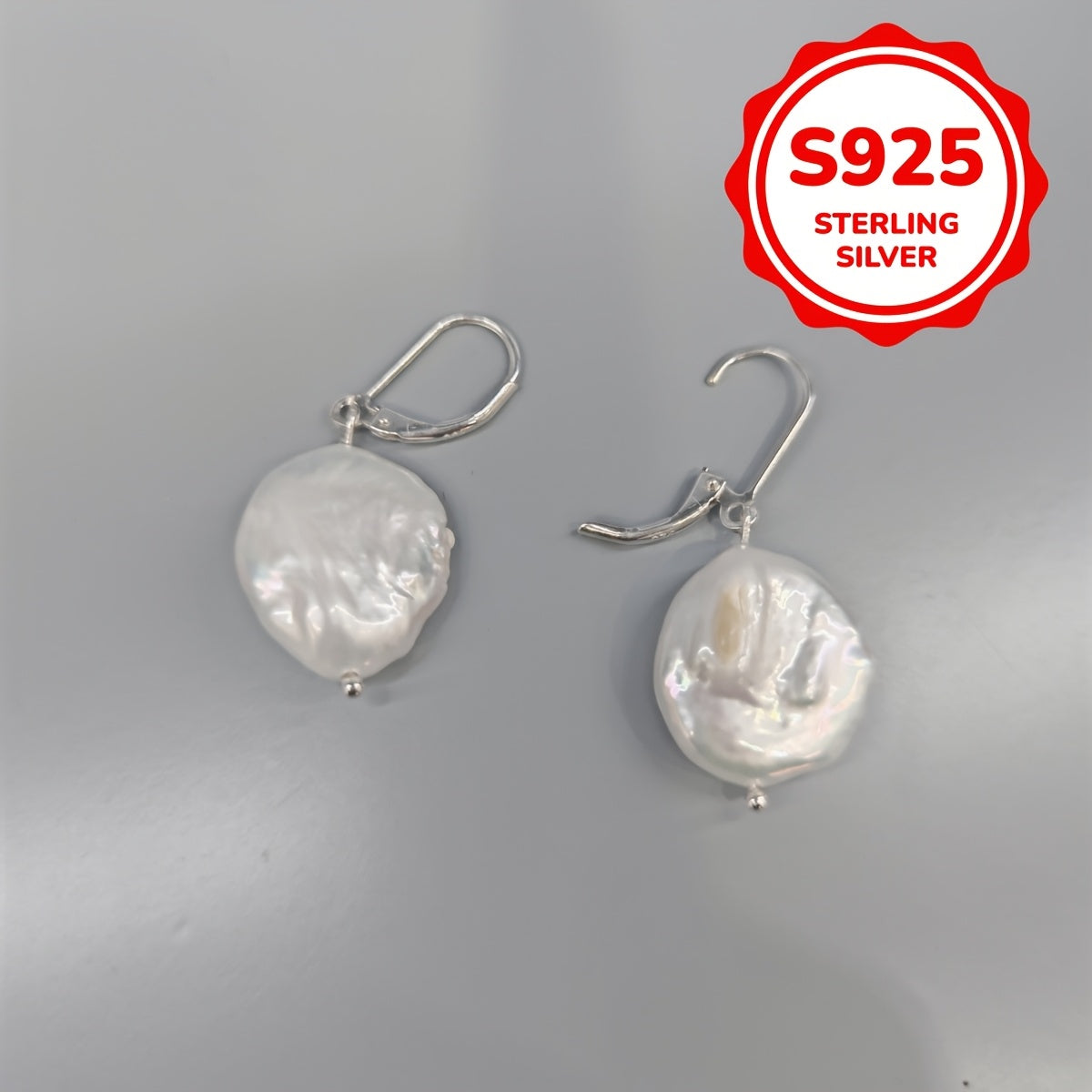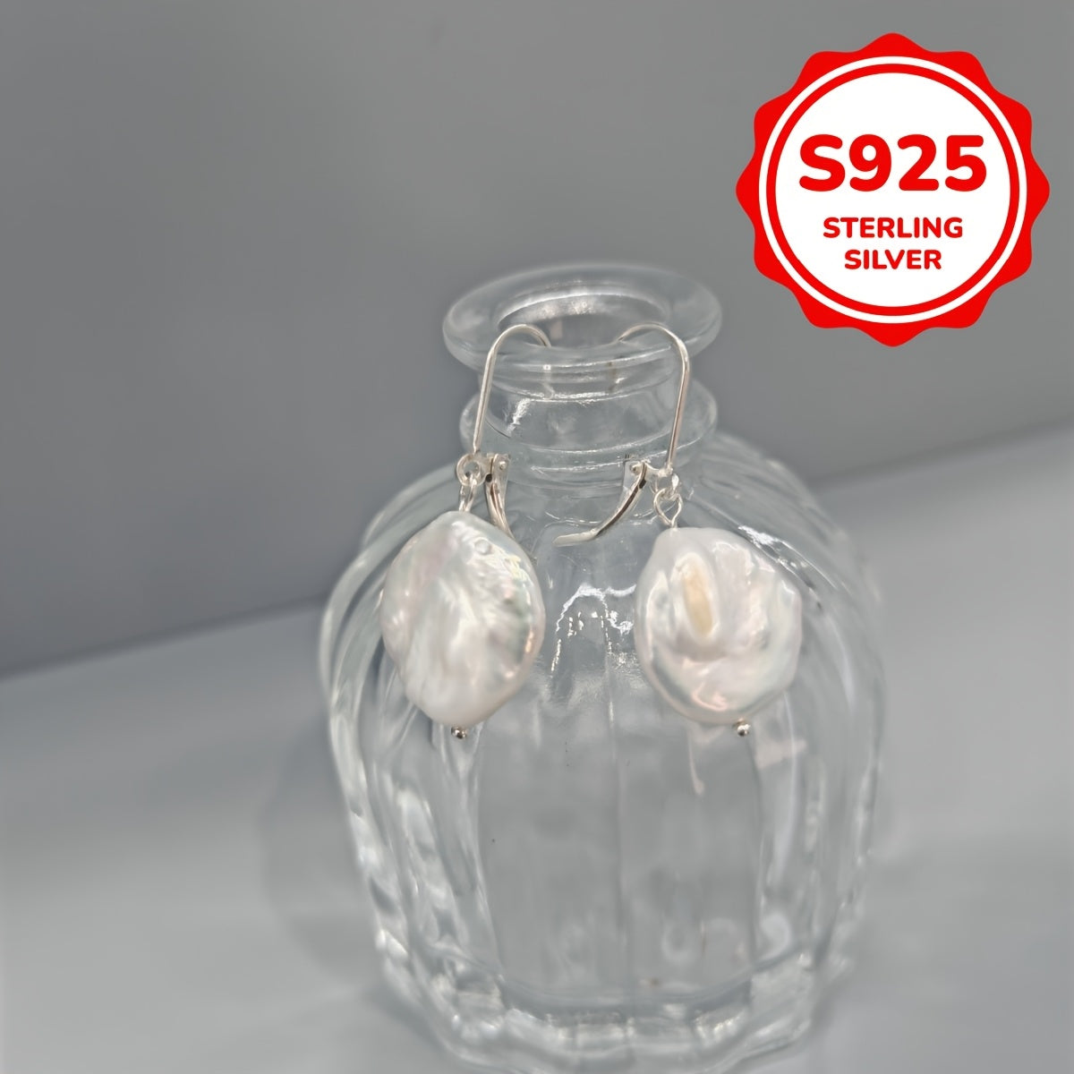 Elegant vintage royal earrings featuring natural freshwater pearls. Crafted from 925 sterling silver, these silvery earrings are lightweight at 1.3 grams.