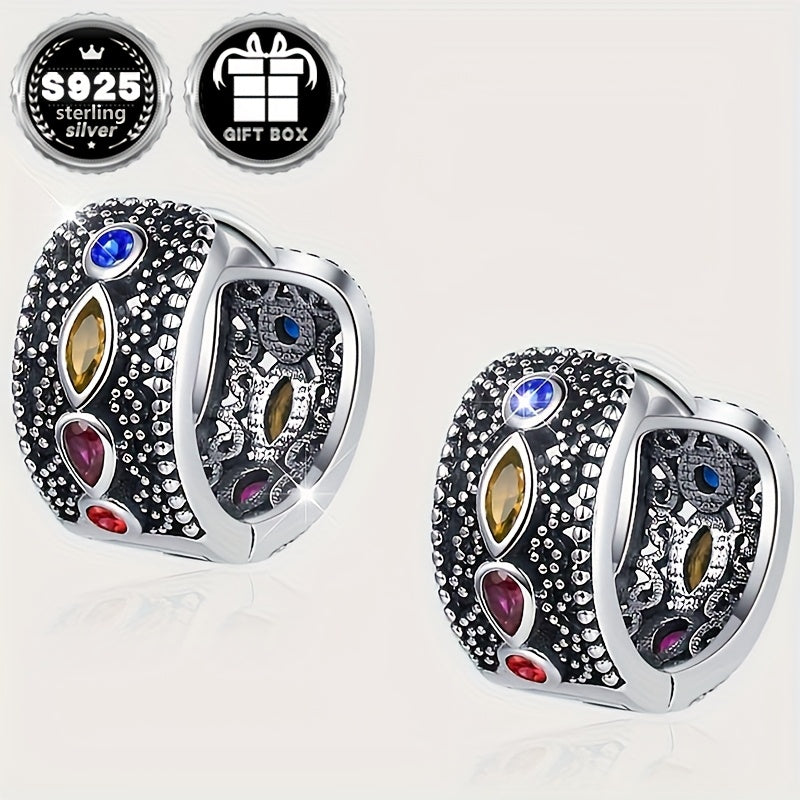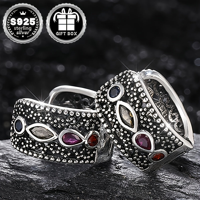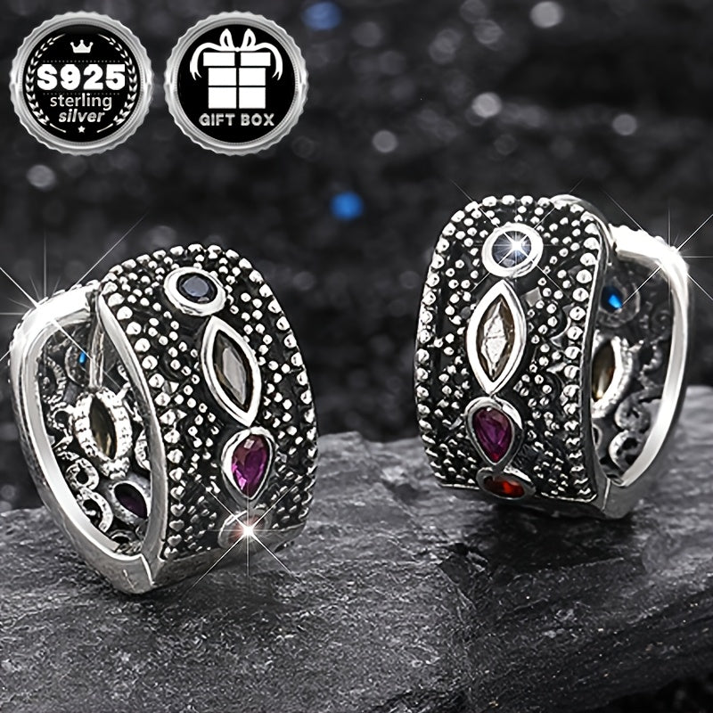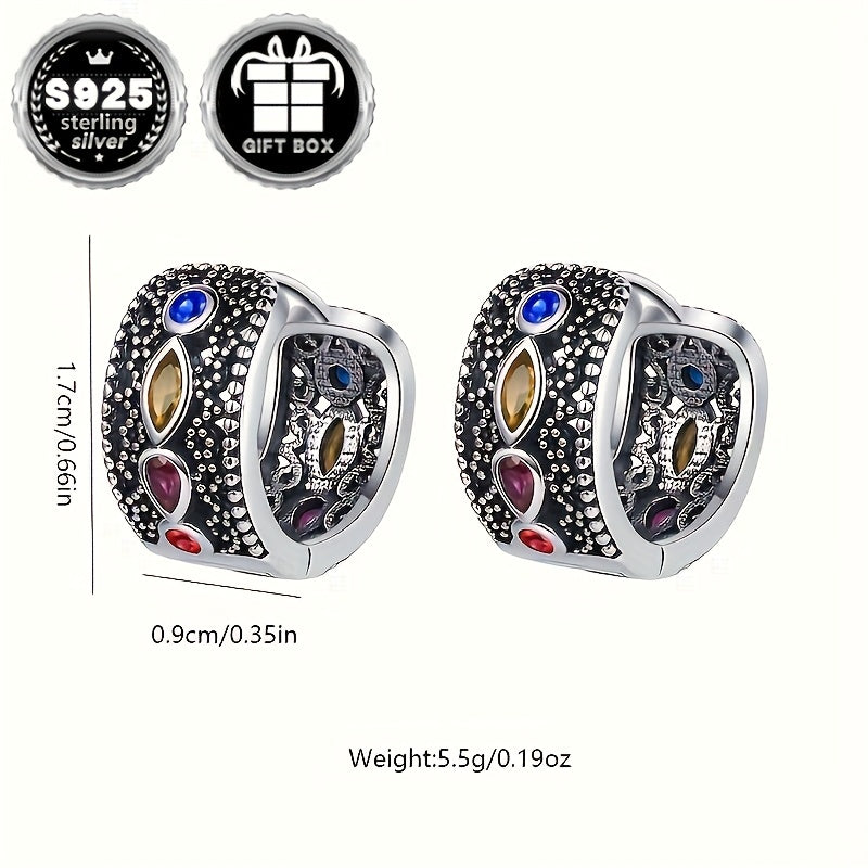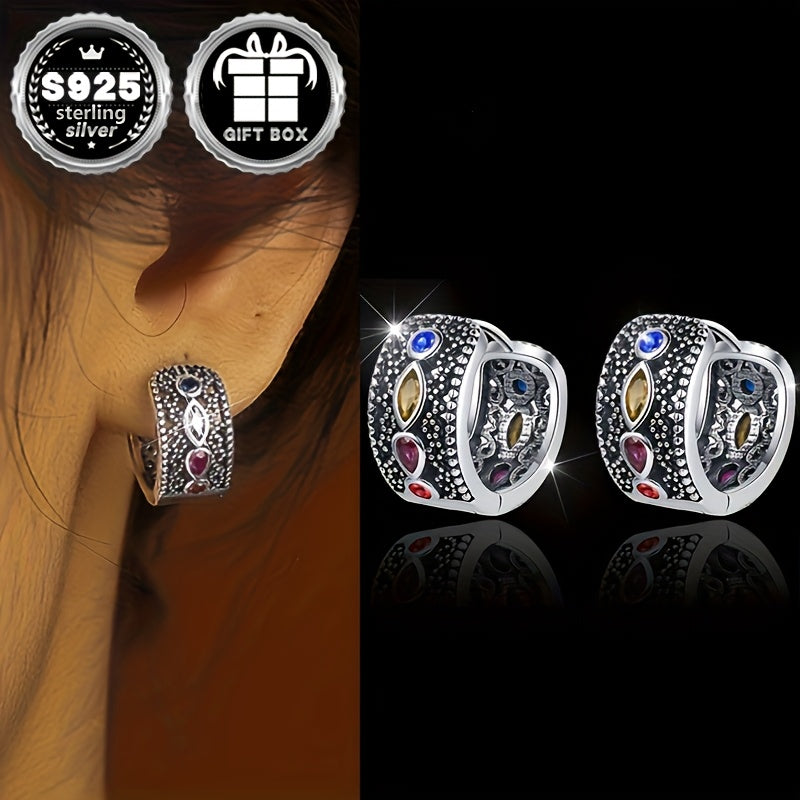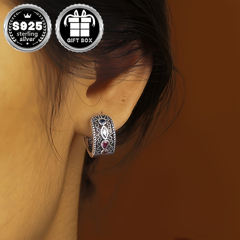 Women's Classic Retro Geometric Earrings 925 Silver Inlaid Synthetic Zirconia