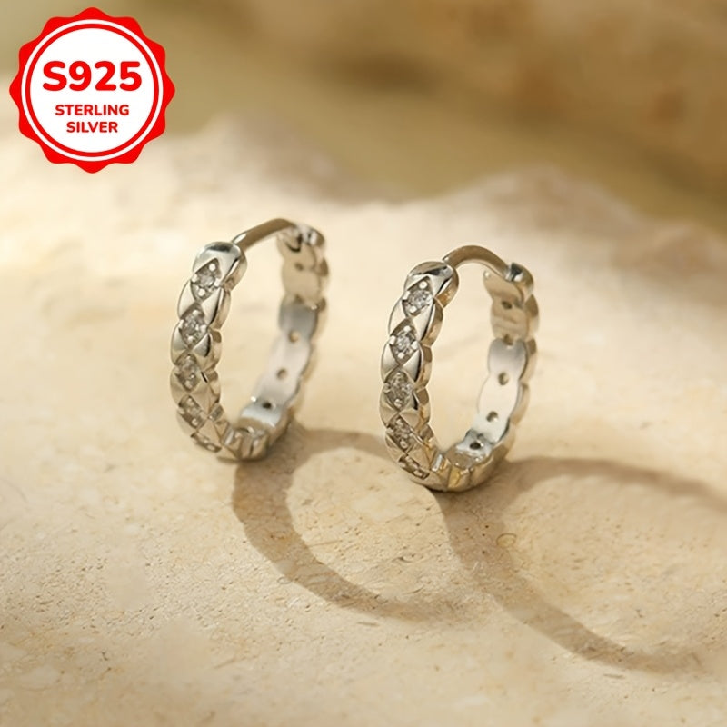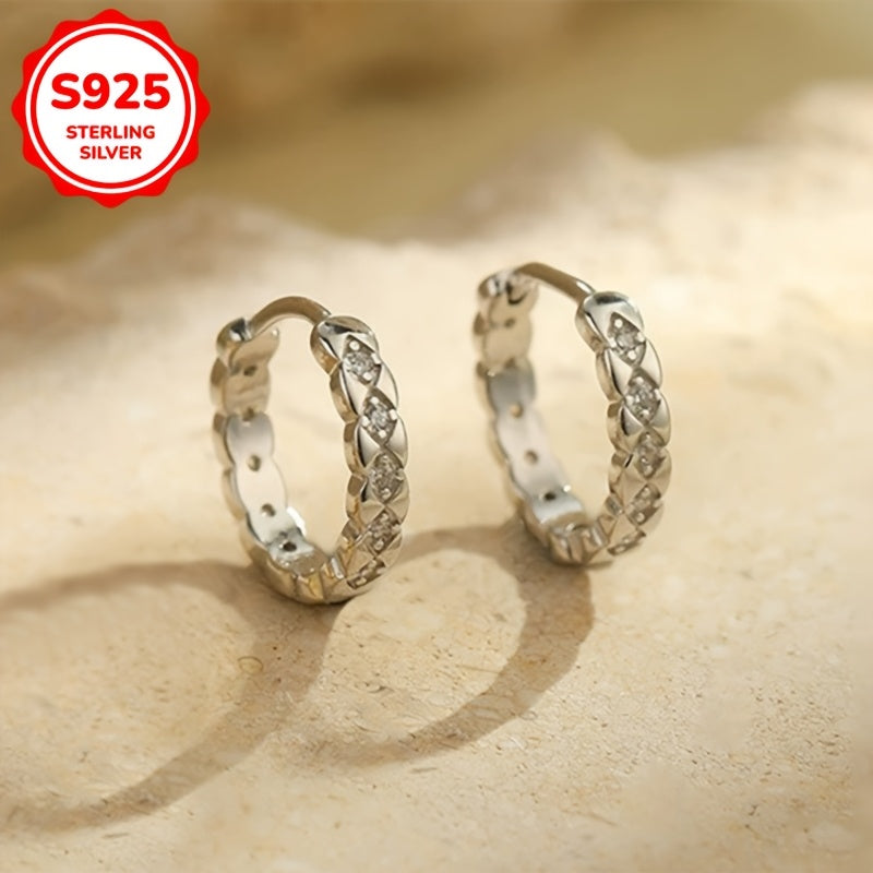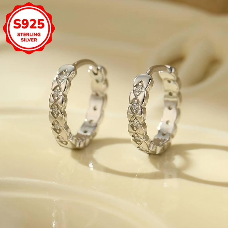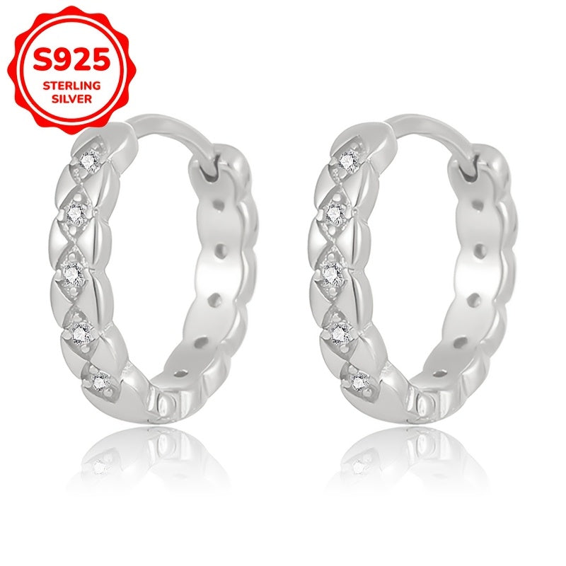 These elegant hoop earrings are made of high-quality S925 sterling silver, featuring CZ accents for a touch of sparkle. They are lightweight and versatile, perfect for everyday wear or special occasions.