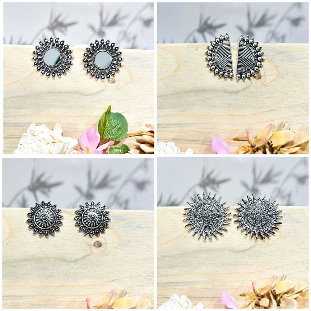 Bling Queen is an affordable fashion jewellery brand with various product types like bracelets, necklaces, earrings, rings, etc. suitable for women, men and kids.Each earring features a stud design, making them comfortable to wear for extended periods. The mirror work is the highlight, with small mirrors intricately set within the metal framework. This design element creates a reflective and eye catching effect. The combo set includes four pairs of earrings, offering versatility in styling. You can choose from different designs or mix and match according to your outfit and mood. The silver plating complements a wide range of colors and clothing styles. These earrings are versatile enough to be worn casually with jeans and a top or dressed up for formal events. The mirror work adds a touch of ethnic charm, making them suitable for traditional wear like sarees, salwar suits, or fusion outfits.Sign up to receive your Bling Queen welcome gift and be the first one to know about giveaways, VIP offers and more