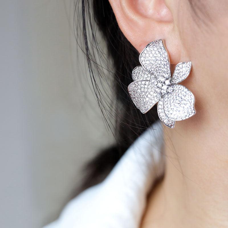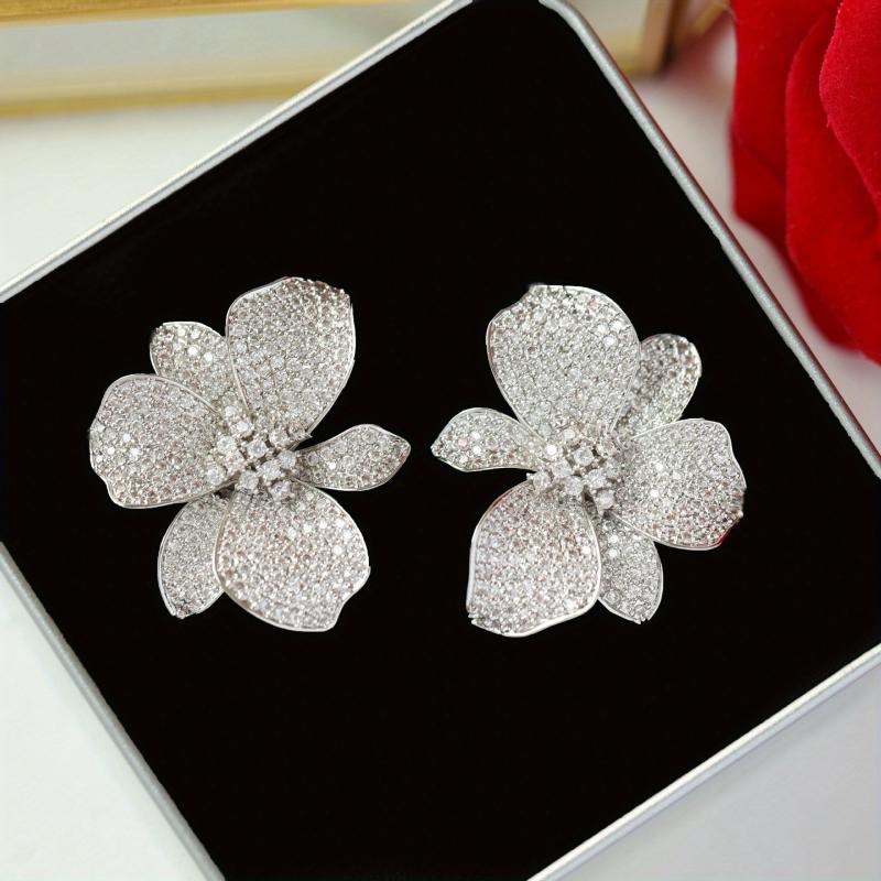 Enhance your look with these sparkling zirconia flower earrings. Perfect for weddings, parties, and various events, these earrings add a touch of elegance to any outfit.
