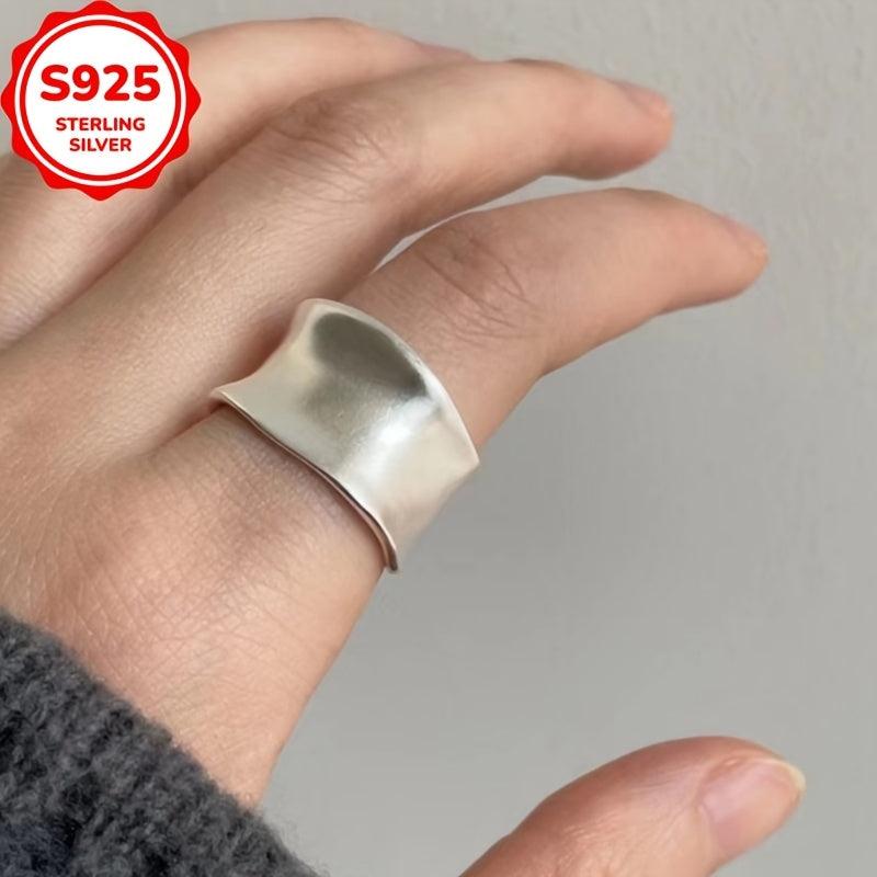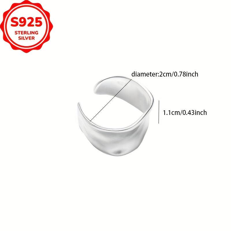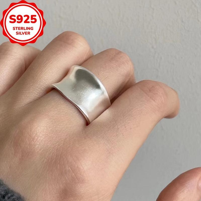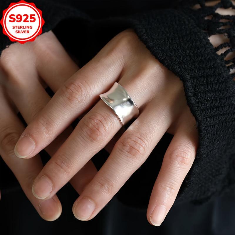 This wide band ring is made of 925 sterling silver with a frosted matte finish, perfect for women with sensitive skin. It features an open ring design for adjustable sizing.