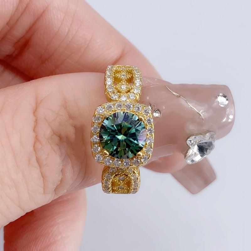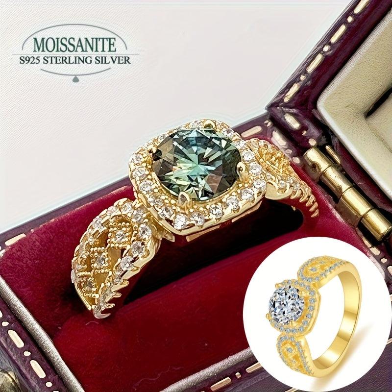 This stunning vintage wedding ring features a 1ct round square baguette Moissanite stone set in 925 sterling silver. Perfect for weddings and banquets.