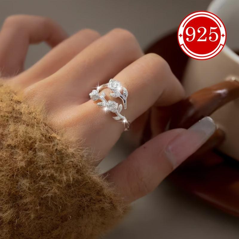 This 925 silver ring features a beautiful rose flower design, perfect for gifting to couples, friends, or for everyday wear. It is hypoallergenic and adjustable.