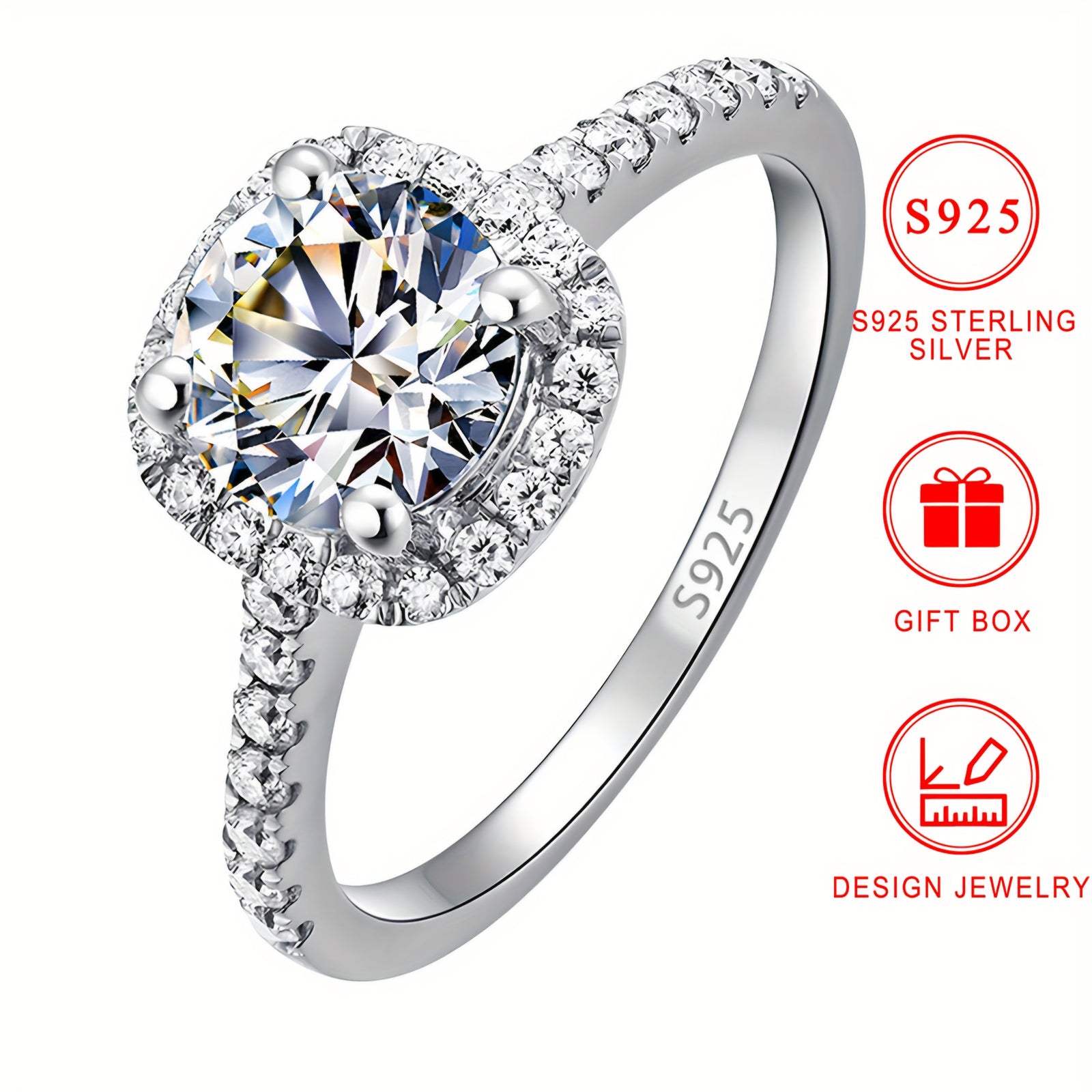 This stunning 925 sterling silver engagement ring features a synthetic round cubic zirconia stone in a four-prong setting. Ideal for daily wear and gifting.