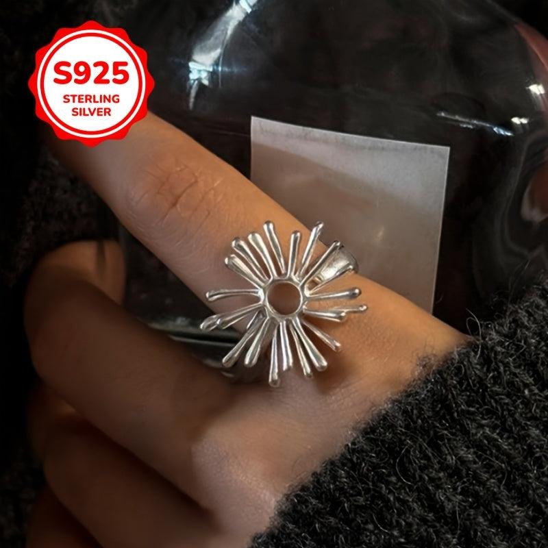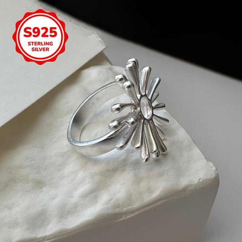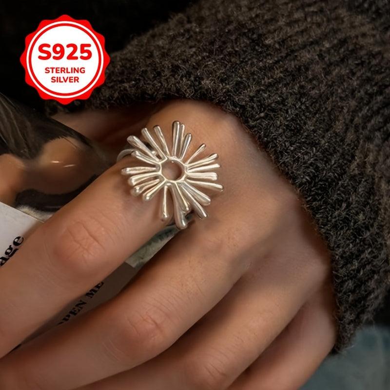 This stunning 925 sterling silver flower ring features a beautiful geometric design. Ideal for daily wear, weddings, beach vacations, and more. The ring is low allergy and adjustable, making it perfect for all-day comfort. The vintage-inspired look adds a touch of elegance to any outfit, while the anti-tarnish packaging ensures long-lasting shine.