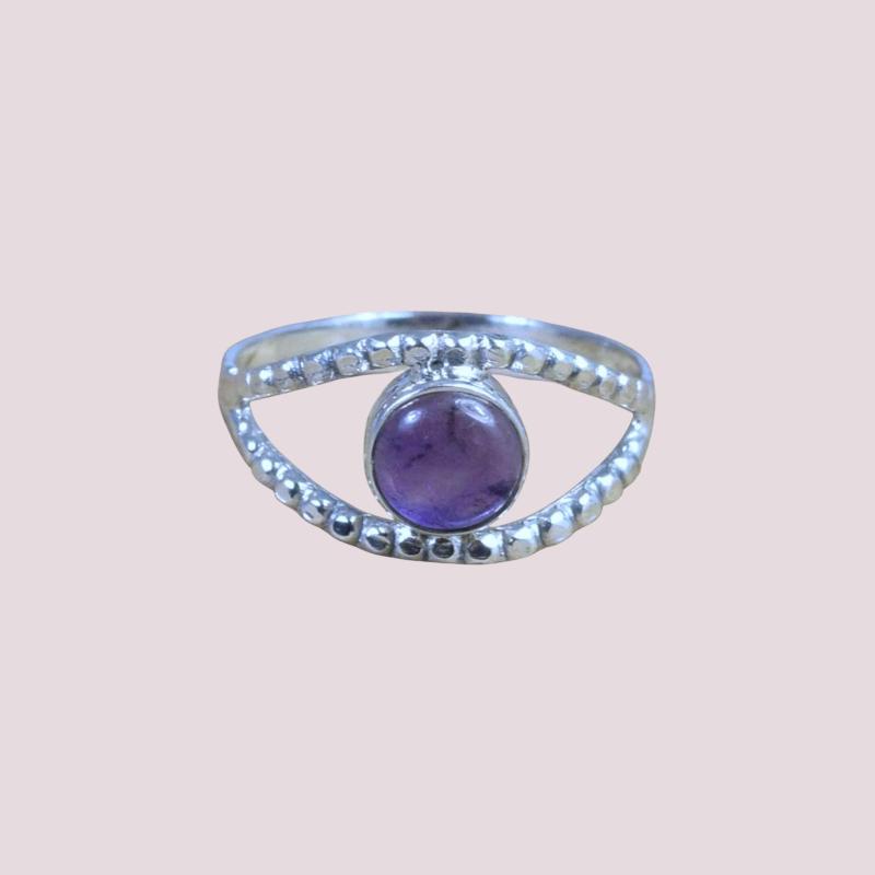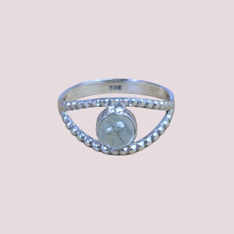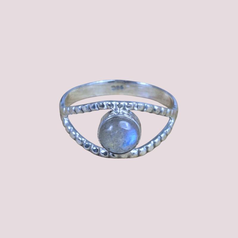 925 Silver Gemstone Eye Ring Moonstone Amethyst Turquoise Prehnite Labradorite