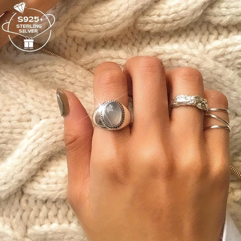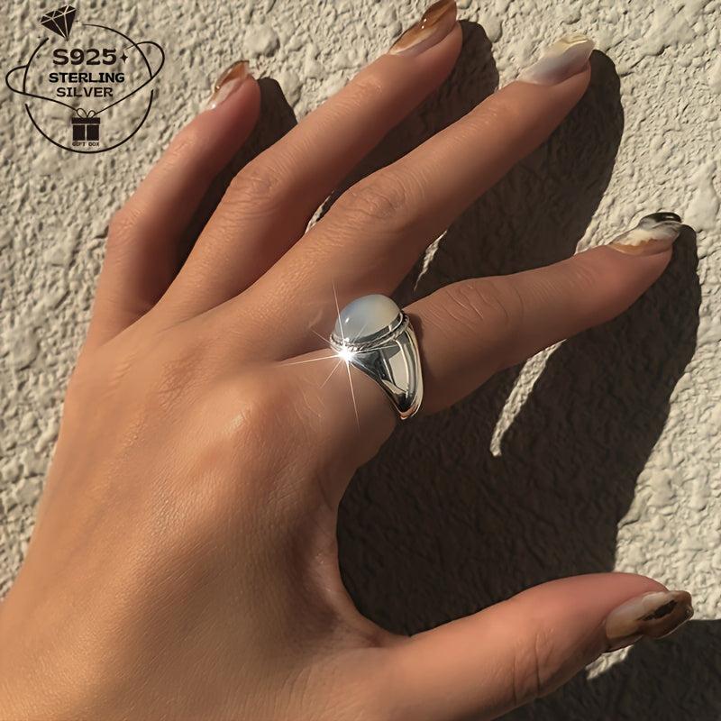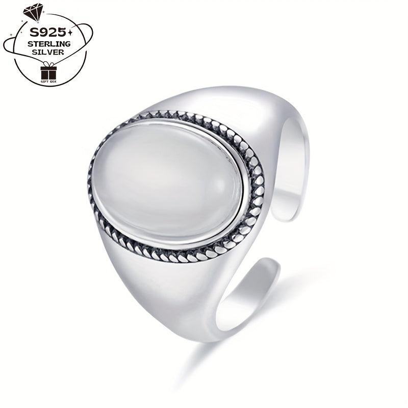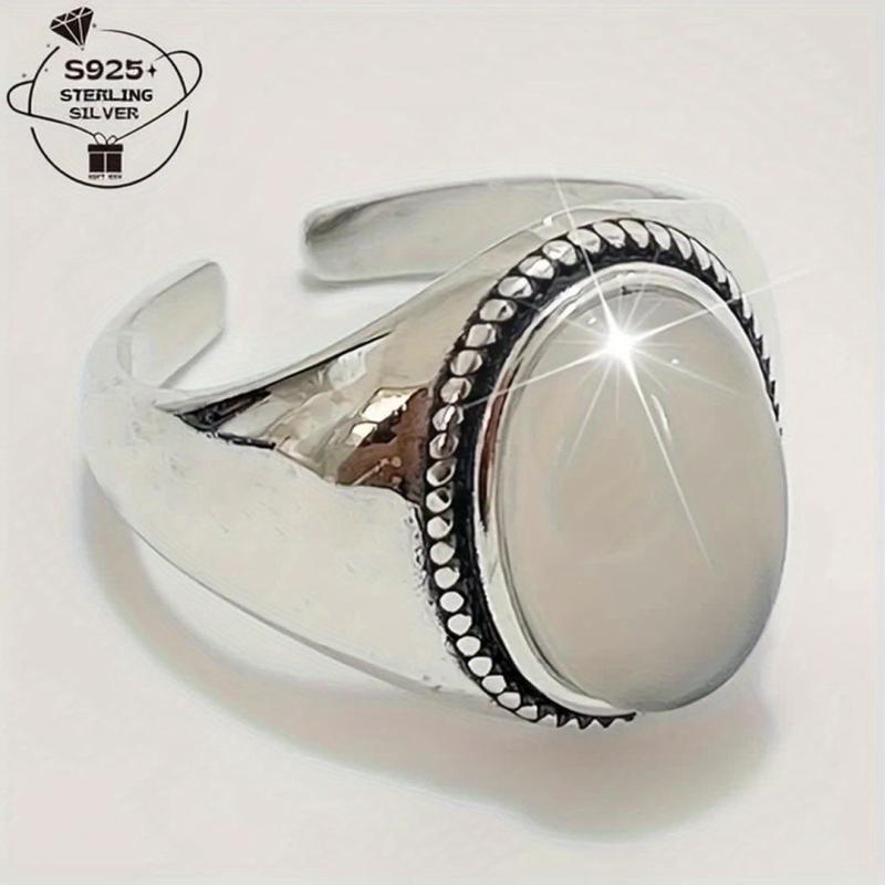 925 Silver Geometric Bead Women's Adjustable Ring Daily Party Wear Gifting