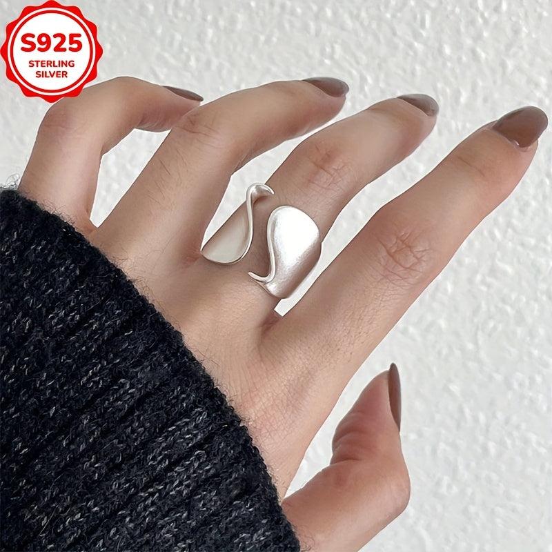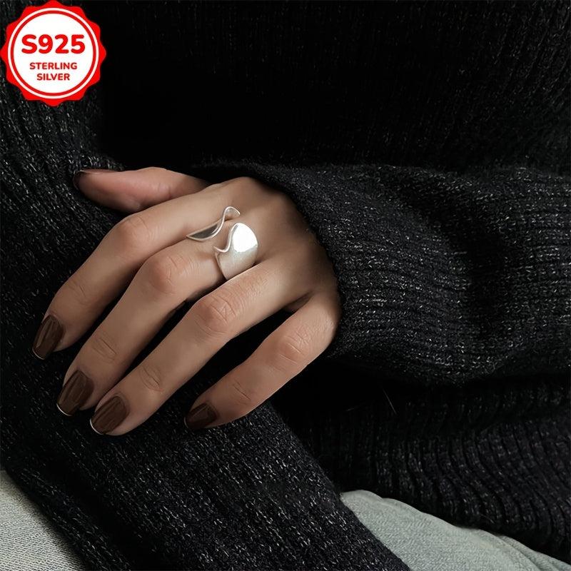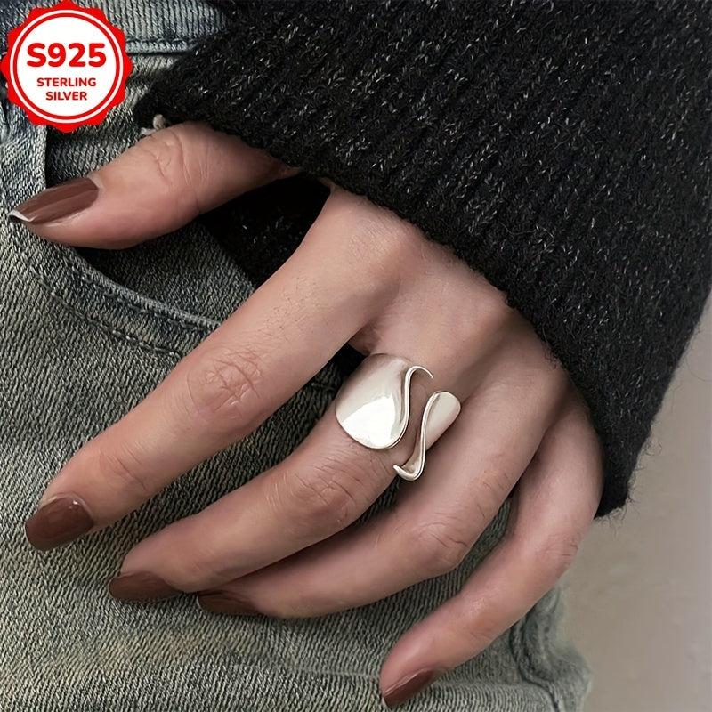 925 Silver Geometric Cuff Ring Wide Band Split Light for Women