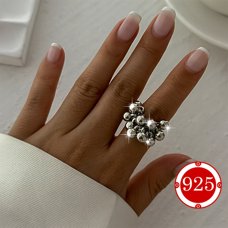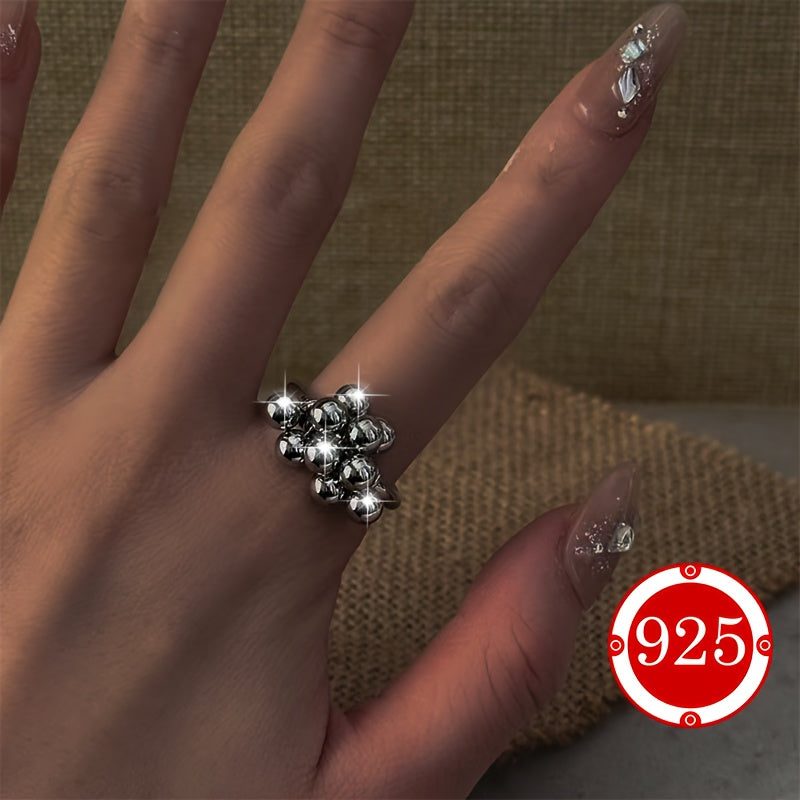 This unique grape cluster ring in 925 silver is a perfect accessory for adding a touch of elegance to your outfit. It's suitable for couples or as an index finger ring.