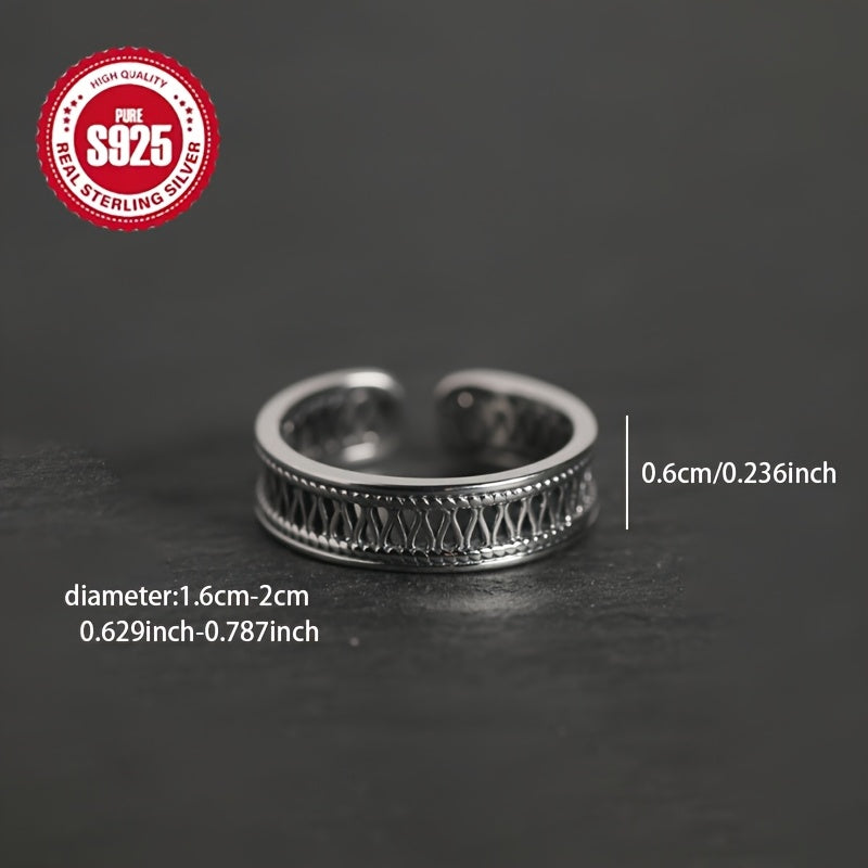 925 Silver Hollow Out Ring Hypoallergenic Retro Index Finger Ring