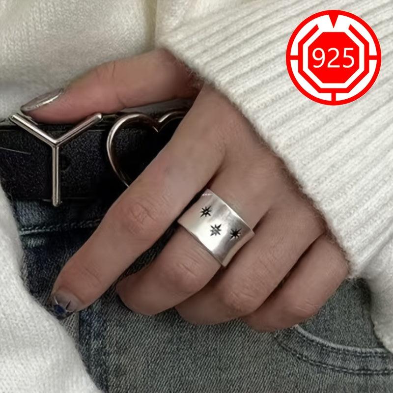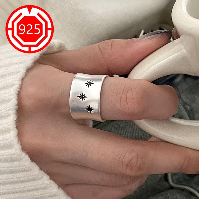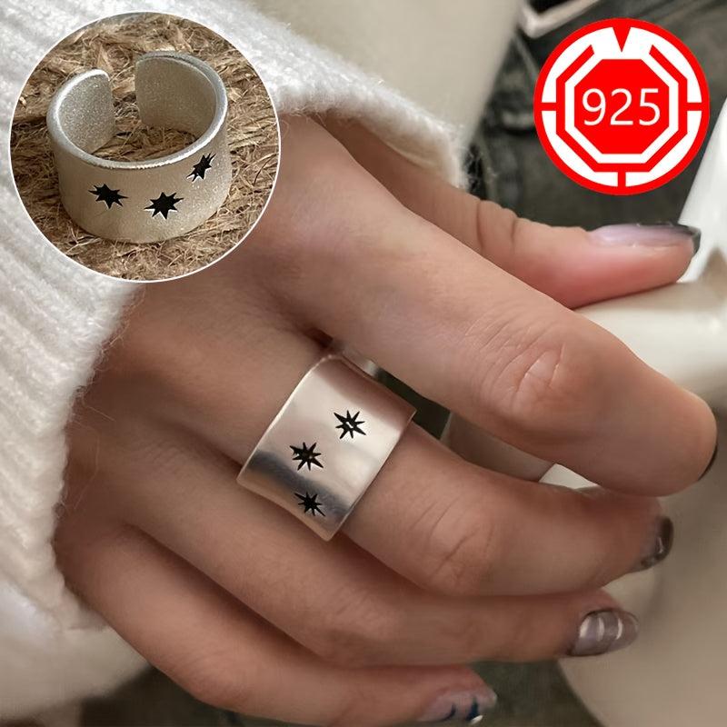 This stylish 925 silver ring features a matte hexagram design, perfect for the index finger or stacking. Hypoallergenic and fashionable.