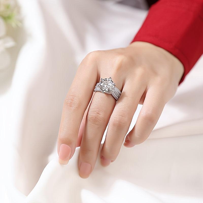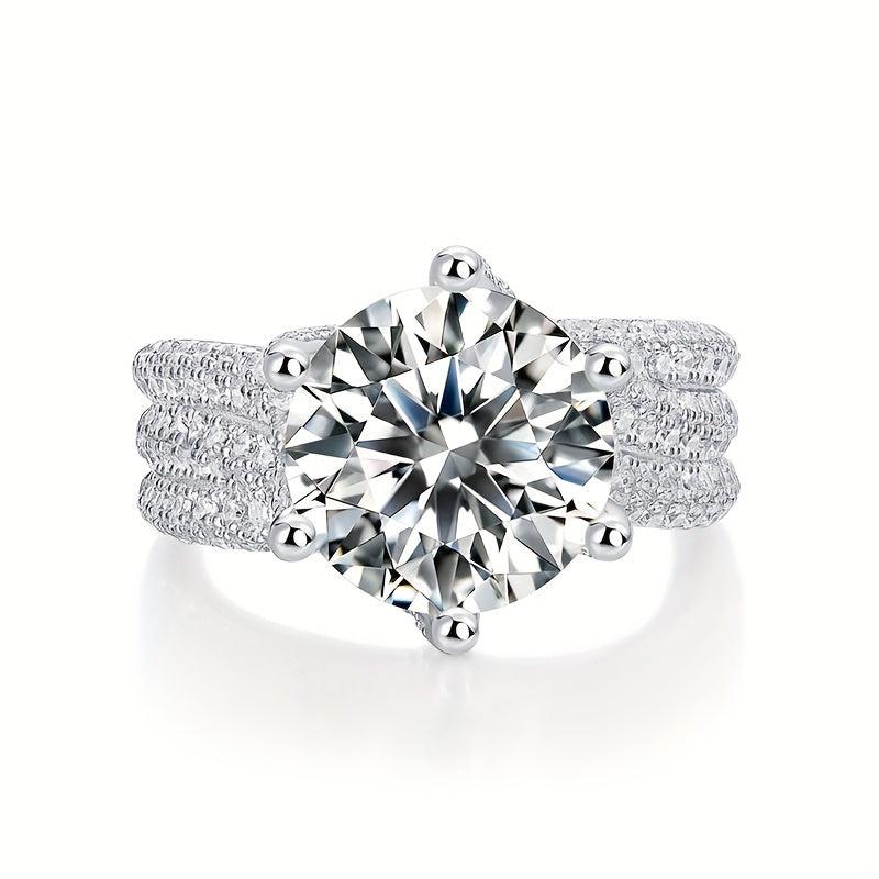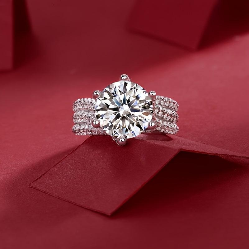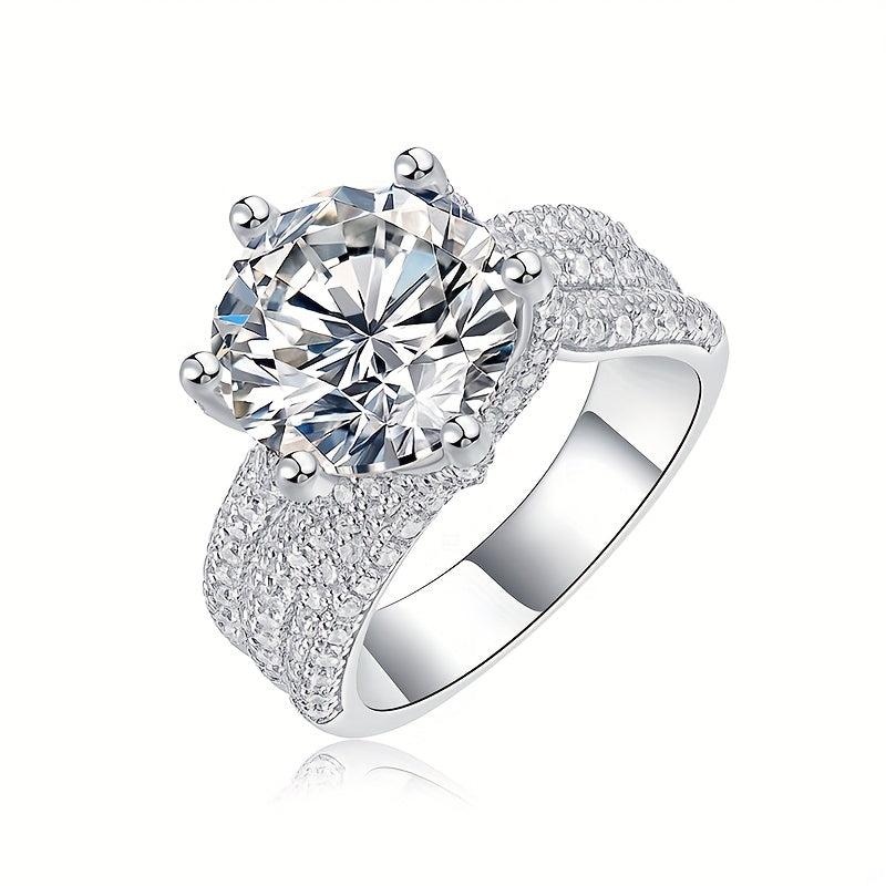 This stunning 925 silver ring features a shimmering moissanite stone with accents, making it the perfect choice for weddings, anniversaries, or special occasions.