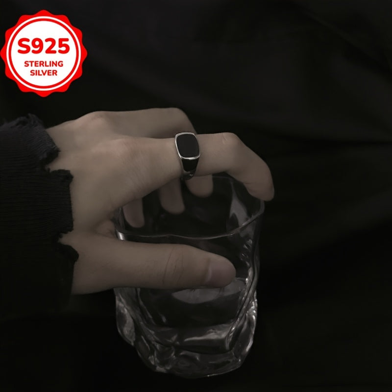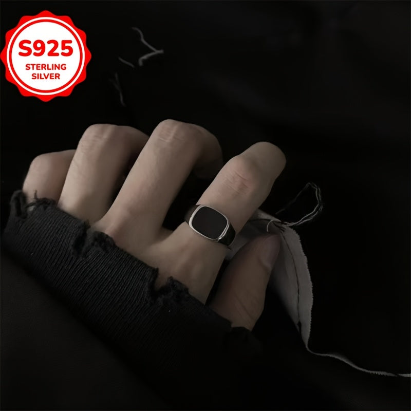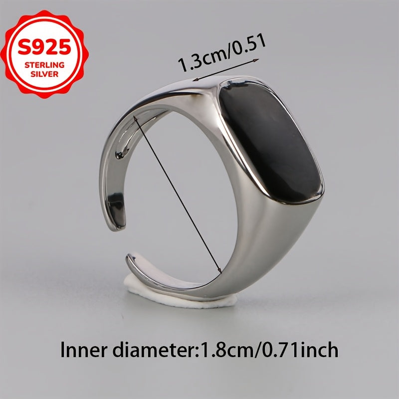 This 925 sterling silver open ring features a hypoallergenic design with a square resin inlay. It's suitable for daily wear and makes a great Valentine's gift at 4-6g lightweight.