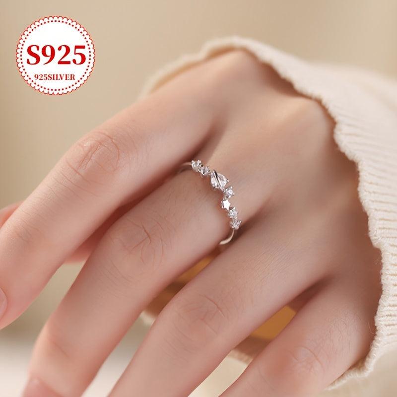 This adjustable open ring is crafted from hypoallergenic 925 sterling silver and features sparkling cubic zirconia accents. The perfect gift for women on any occasion!