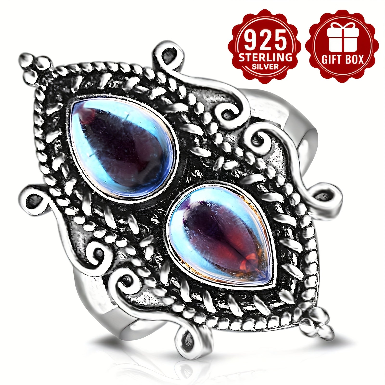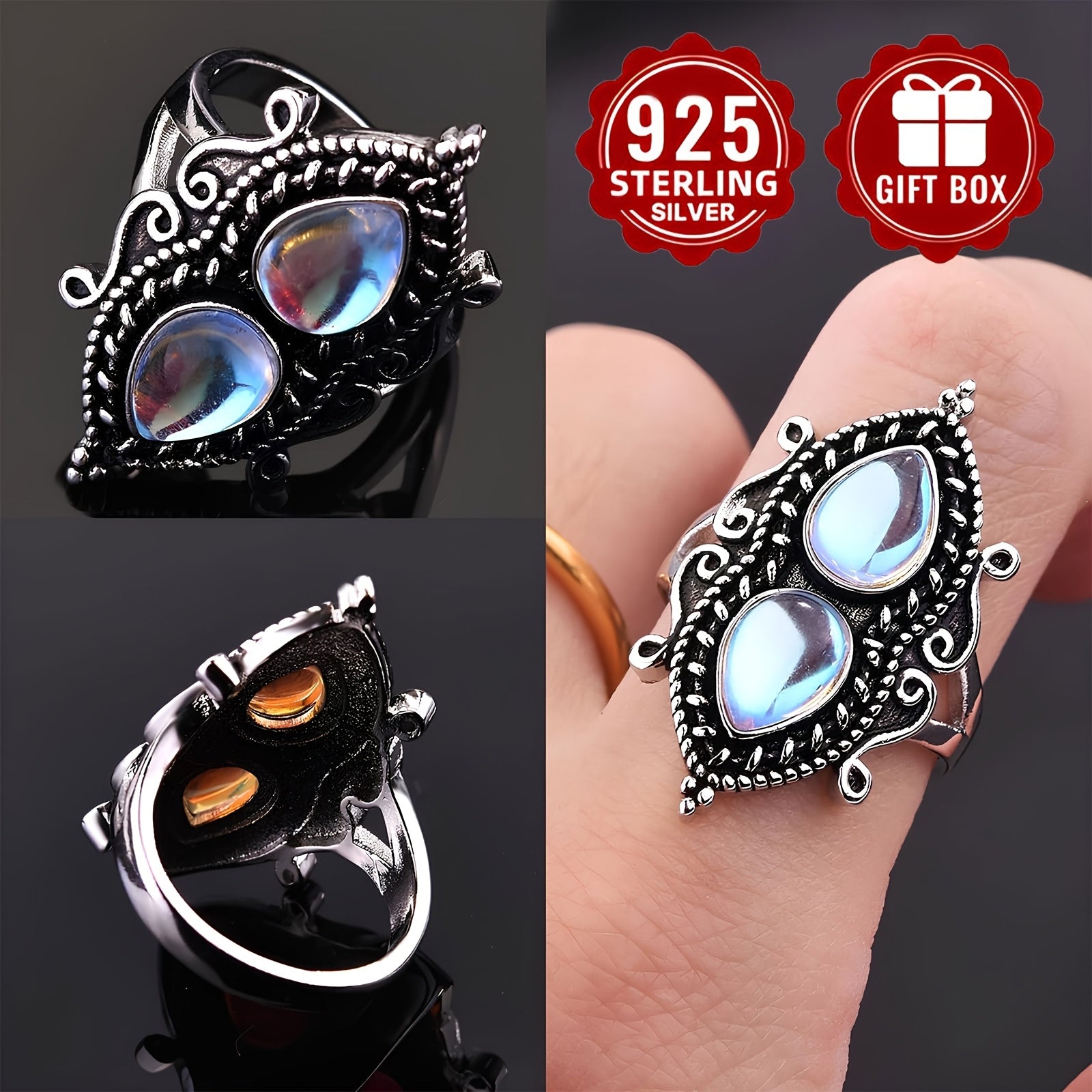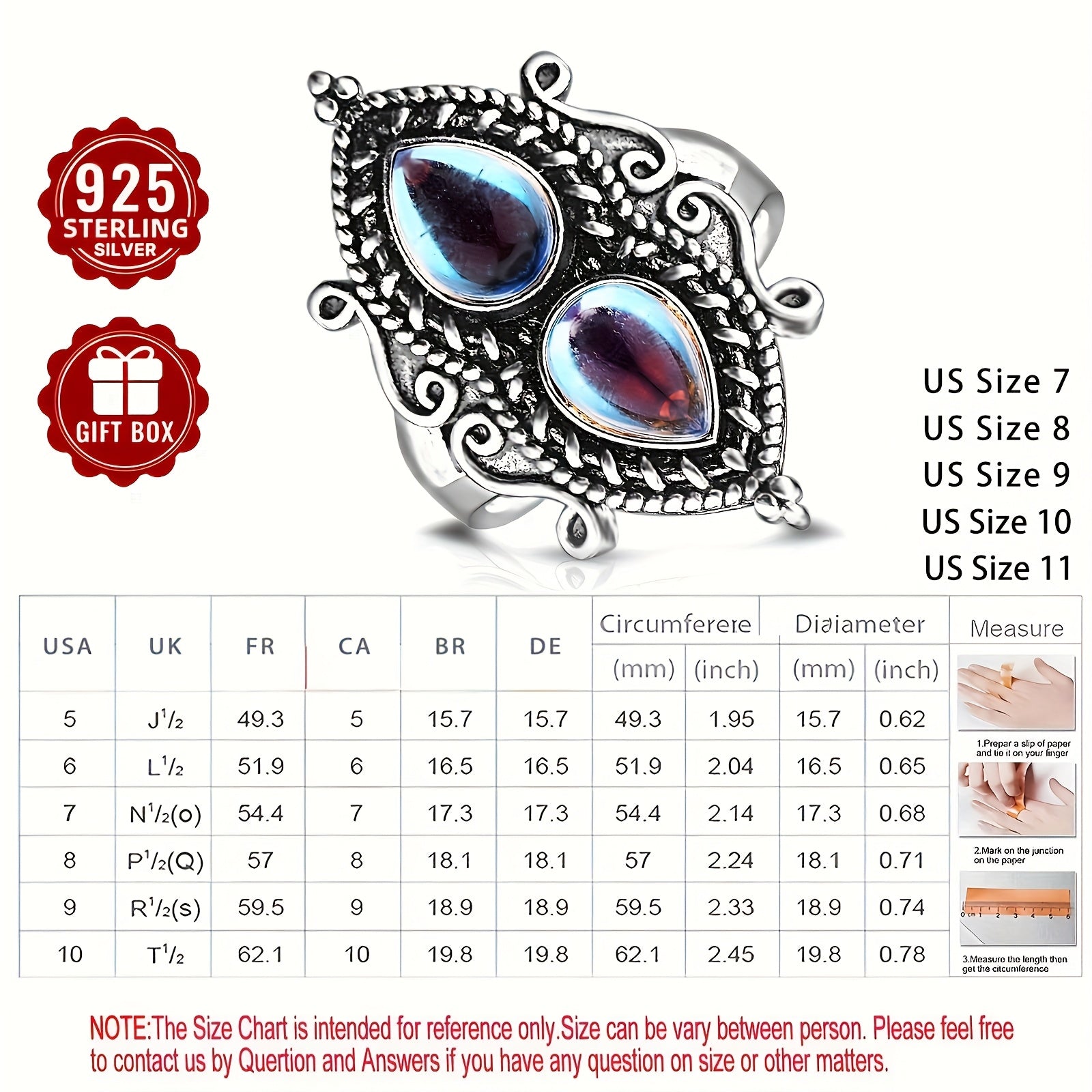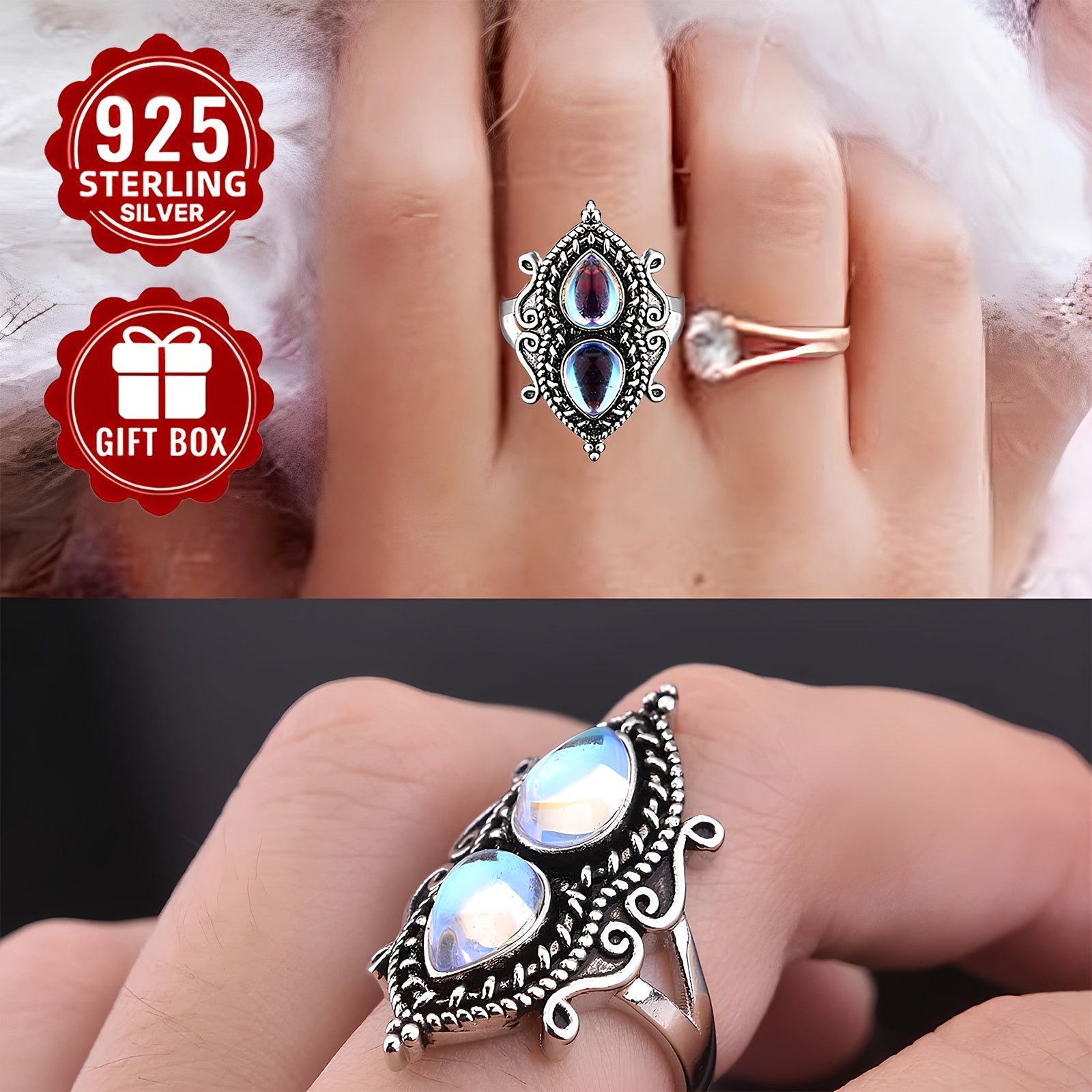 Add a touch of vintage bohemian style to your look with this stunning 925 silver rainbow moonstone ring. The large design and beautiful rainbow moonstone make this ring a standout piece for any occasion.