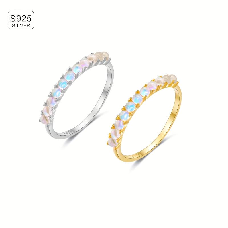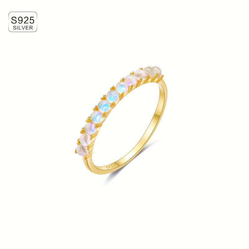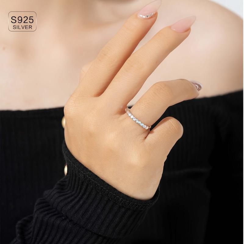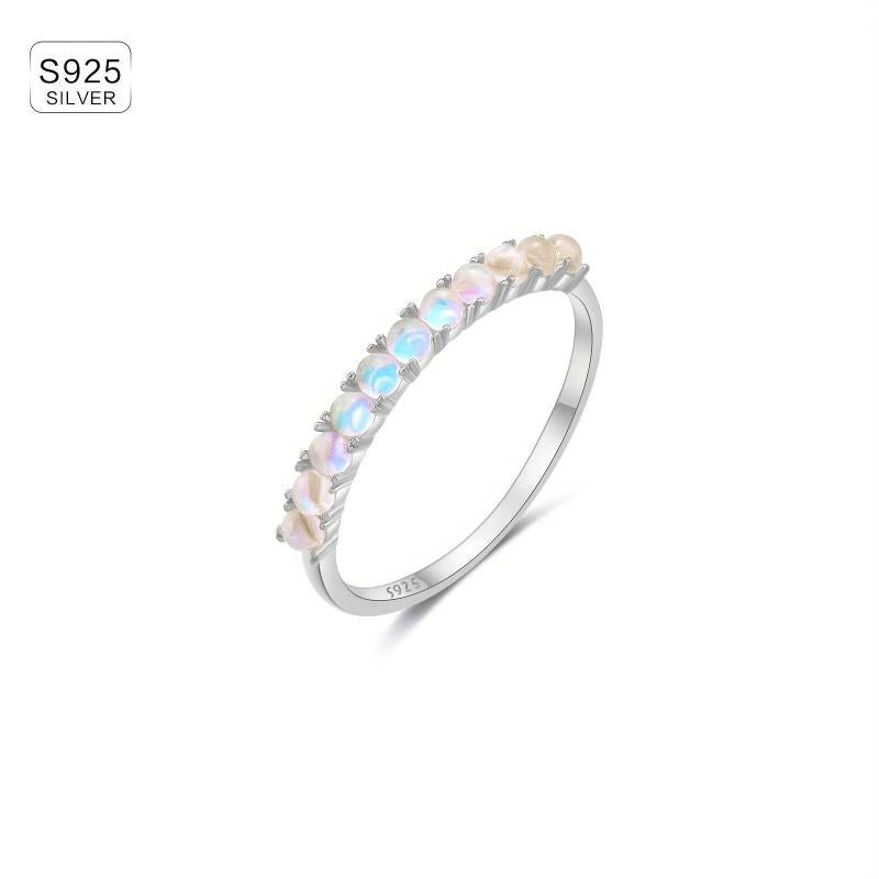 This stunning 925 sterling silver ring features a central rainbow moonstone surrounded by zirconia stones. It has a thin band making it ideal for daily wear and parties. A perfect gift for someone special.