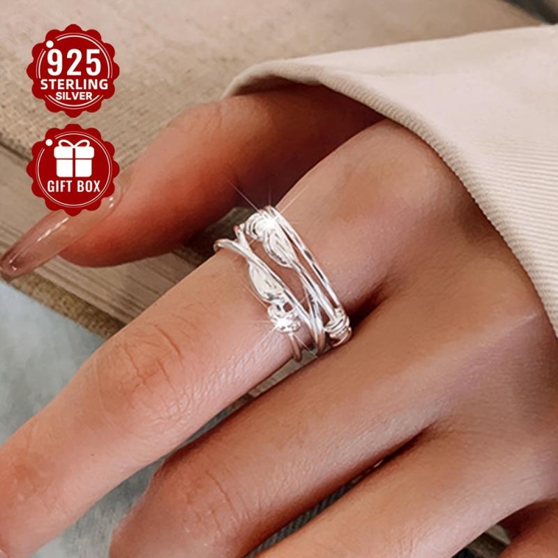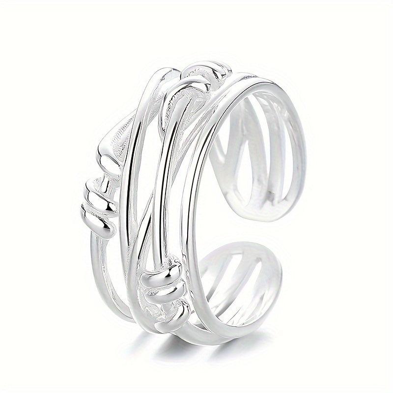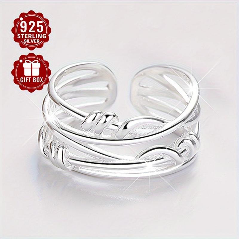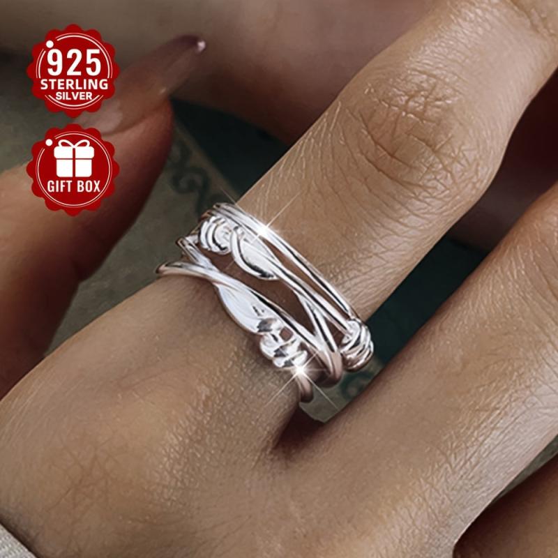 This sterling silver open ring features a unique twisted design, suitable for daily wear and special occasions. It makes an ideal gift for mothers or as an everyday accessory.