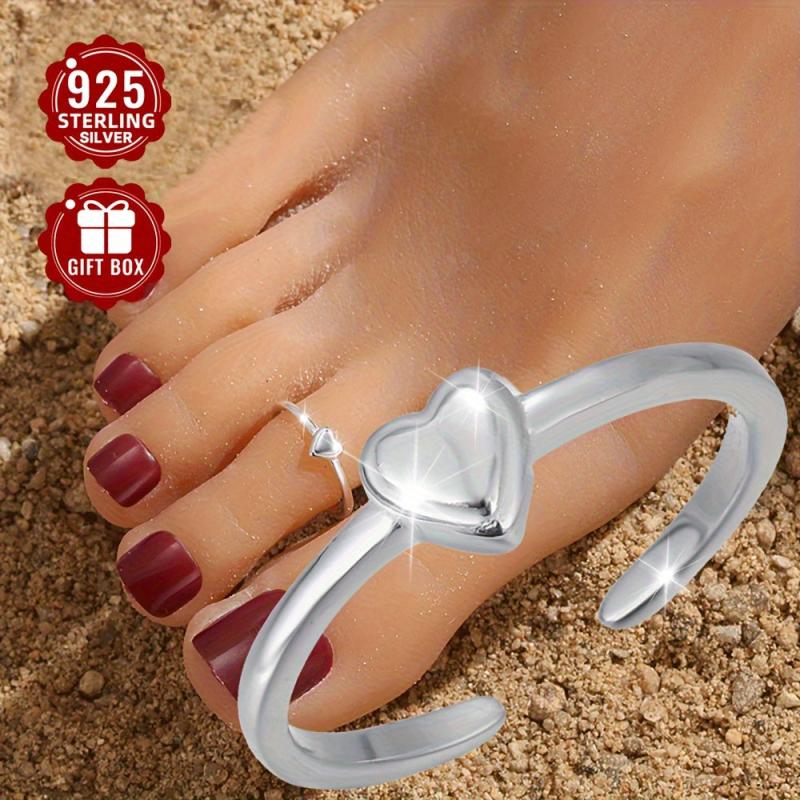 925 Sterling Silver Heart Anklet Toe Ring Set