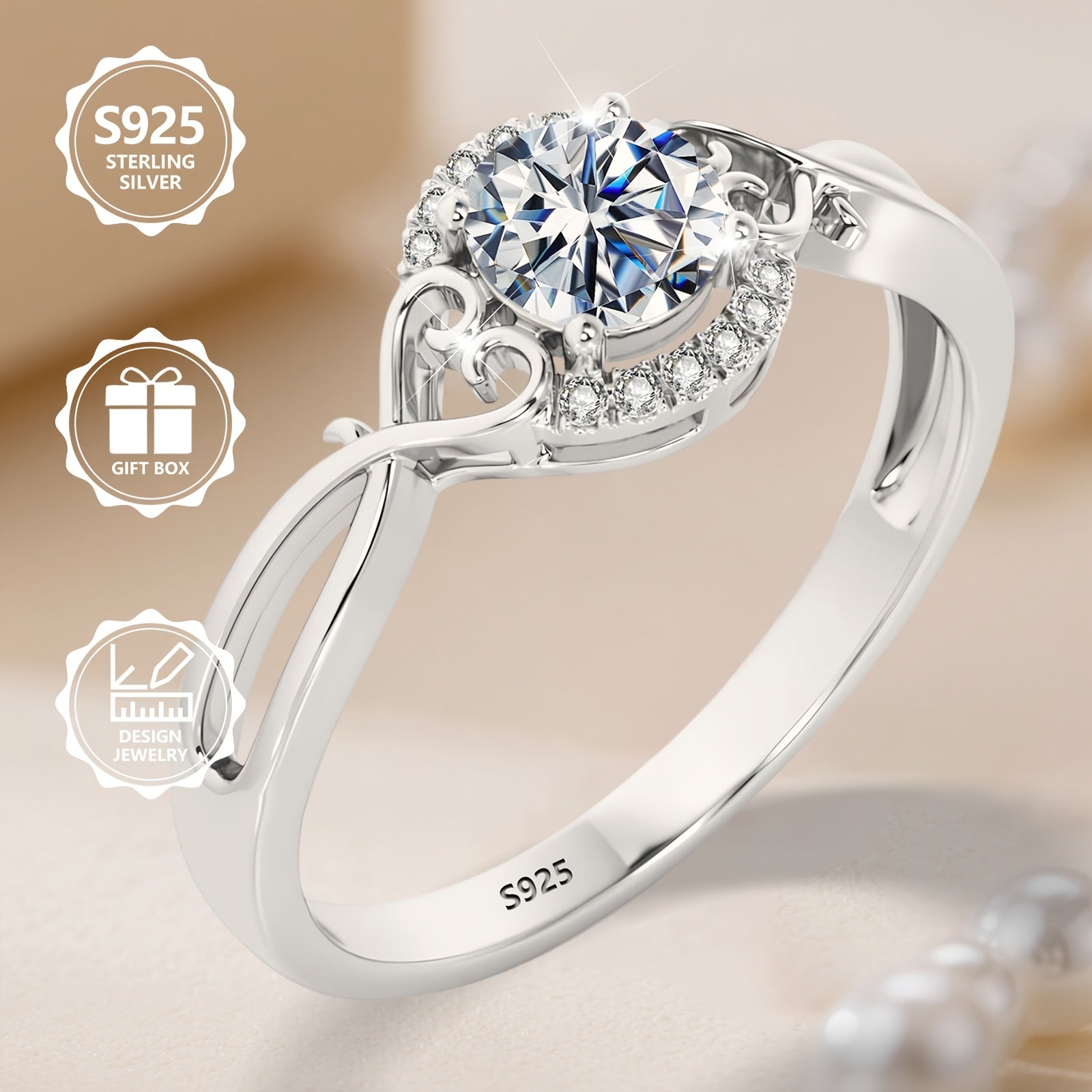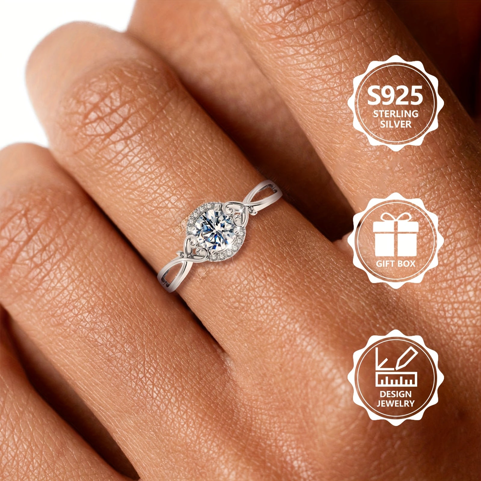 This stunning 925 sterling silver engagement ring features a heart-shaped twist design with round cubic zirconia stones. Suitable for all seasons, it is perfect for daily wear or as a thoughtful gift.